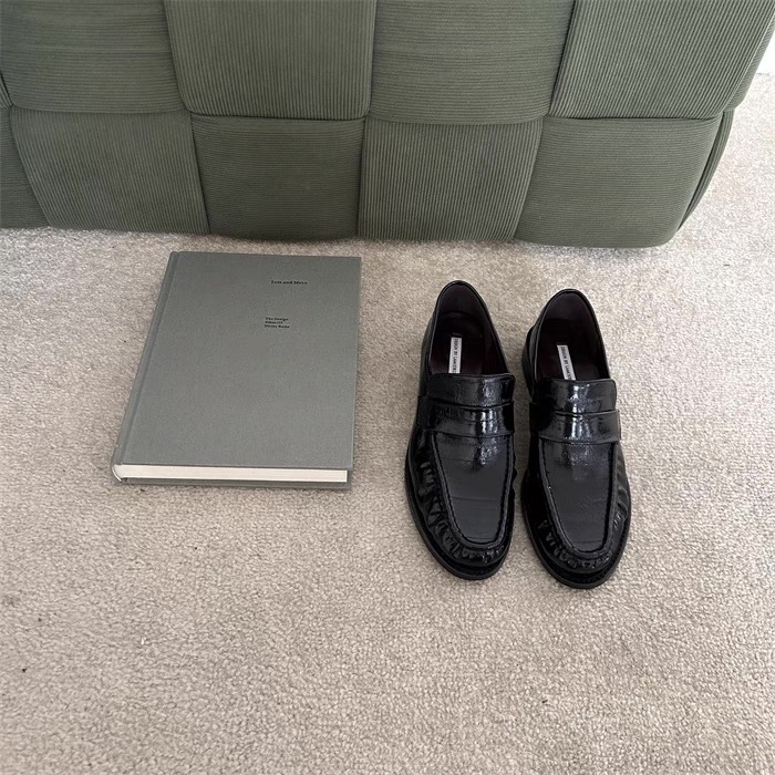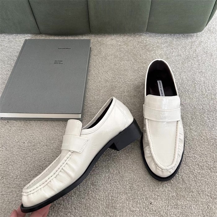 Lamode小众高级石头纹粗跟单鞋英伦风真皮圆头粗跟一脚蹬乐福鞋女