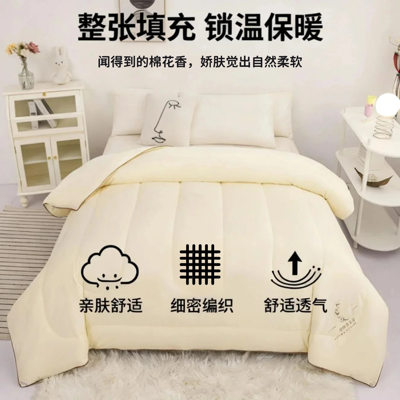 100%纯棉全棉新疆长绒棉被子