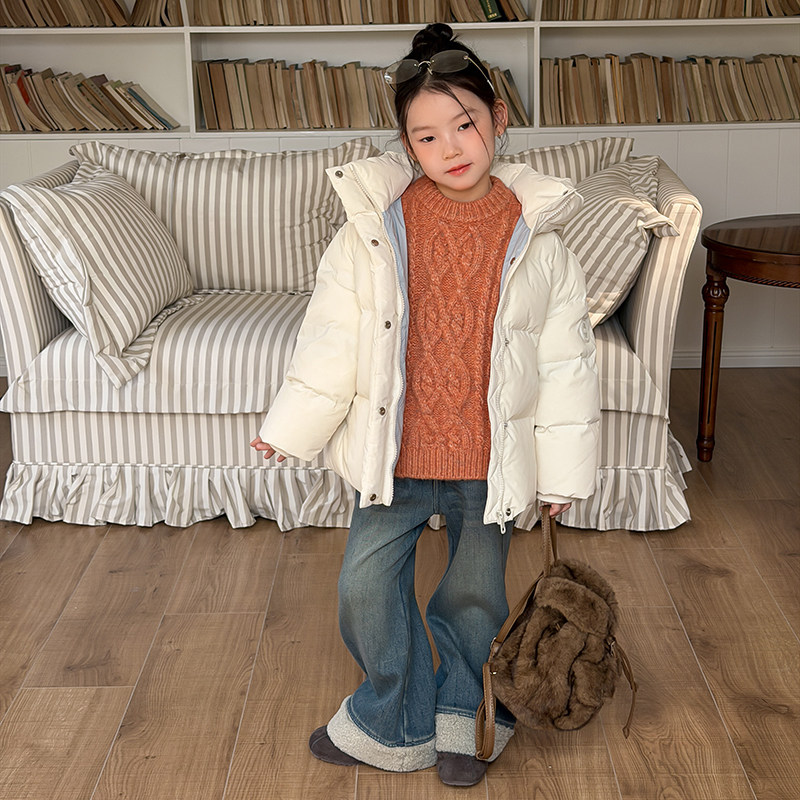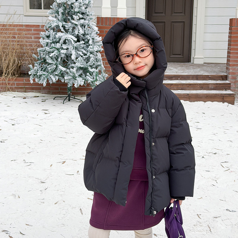 依依妈女童冬季韩版加厚保暖羽绒服儿童新国标90白鸭绒面包服外套