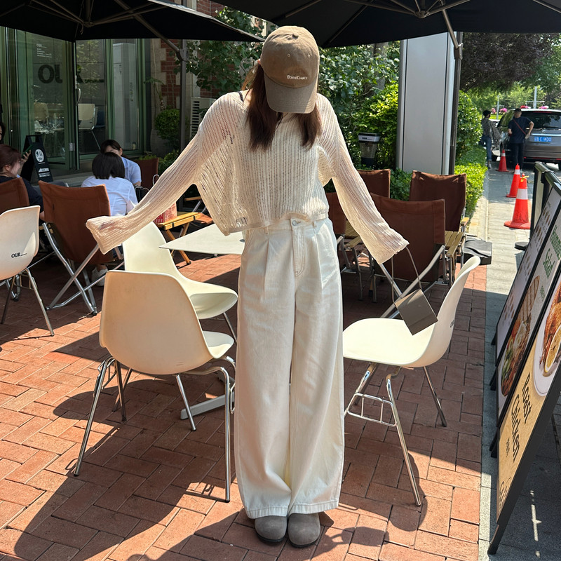 AIRIQI奥莱女装高腰牛仔裤时尚显瘦直筒薄款阔腿长裤AI42NC403