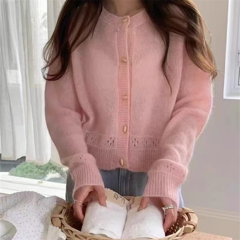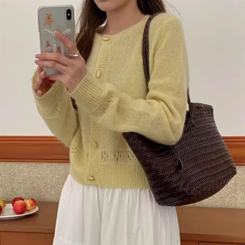 2025春季新款温柔风黄色针织开衫韩版宽松显瘦纯色百搭软糯毛衣女