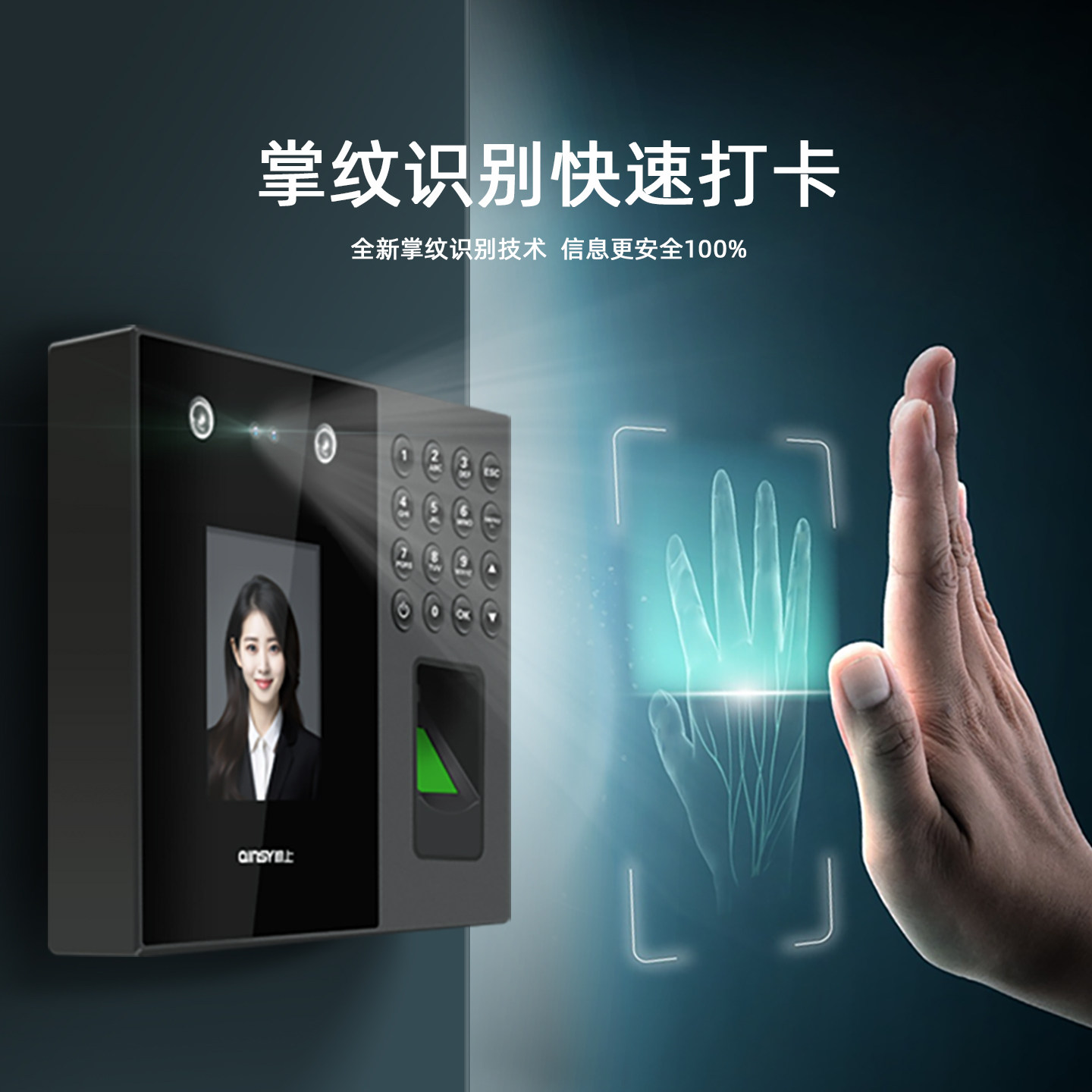勤上人脸掌纹指纹多功能考勤机
