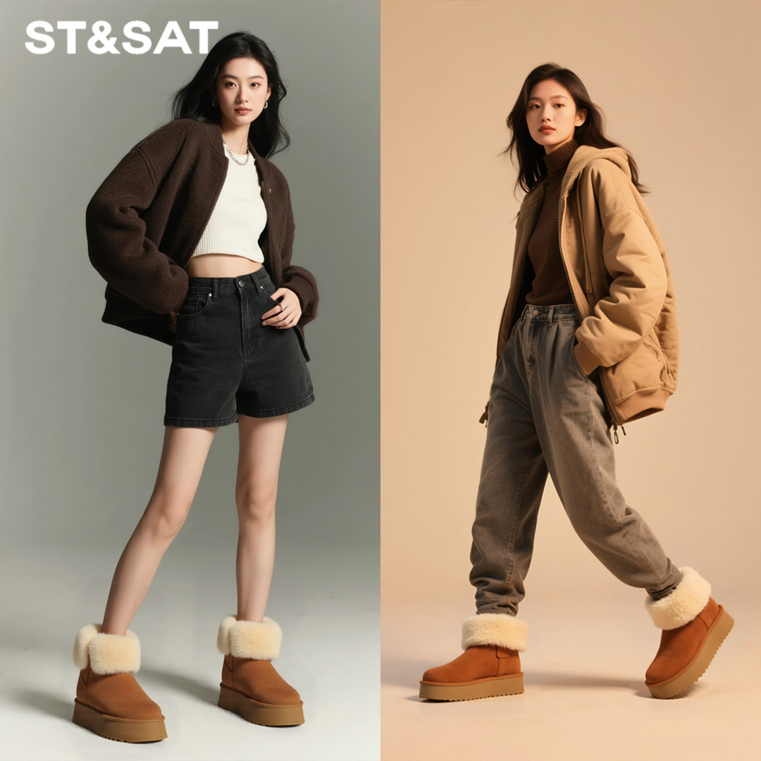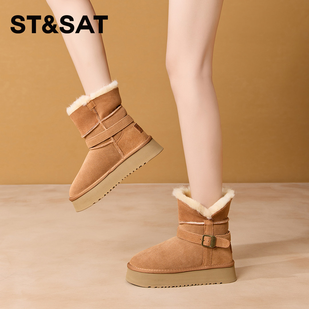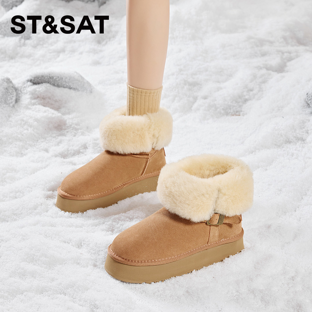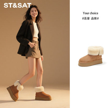 星期六真皮加绒加厚雪地靴女2025新款冬季毛毛靴保暖雪地棉女靴子