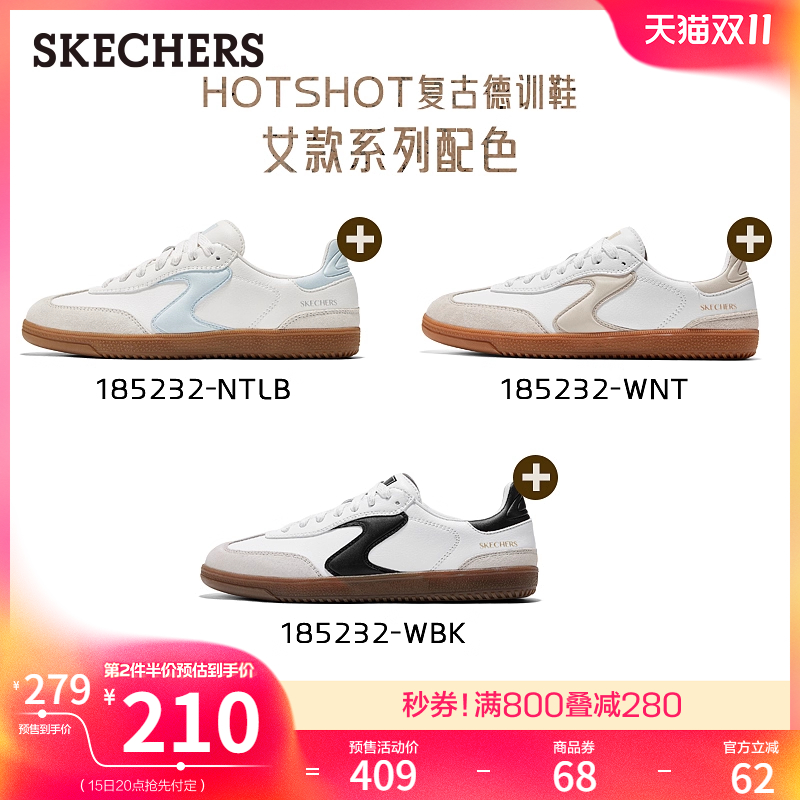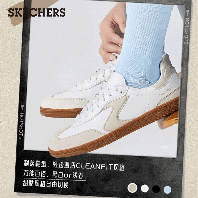 双11预售|斯凯奇2025冬季女鞋休闲运动鞋厚底皮面板鞋复古德训鞋