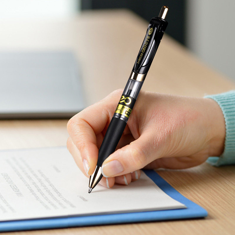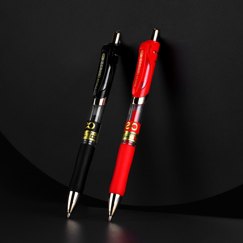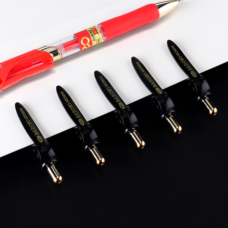 宝克按动中性笔加粗1.0mm子弹头黑色按压签字笔学生练字粗头硬笔书法教师商务办公签名红笔芯大笔画碳素水笔