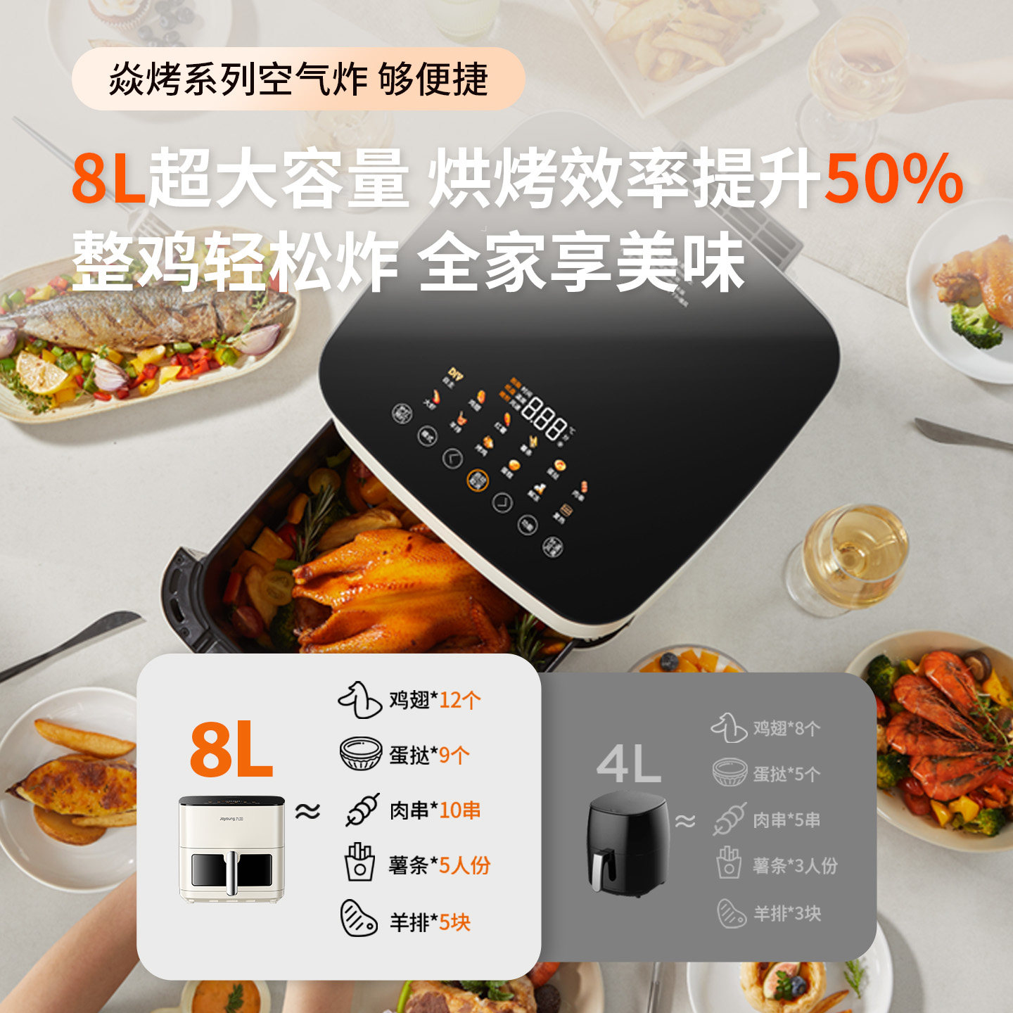 九阳双热源多功能大容量空气炸锅