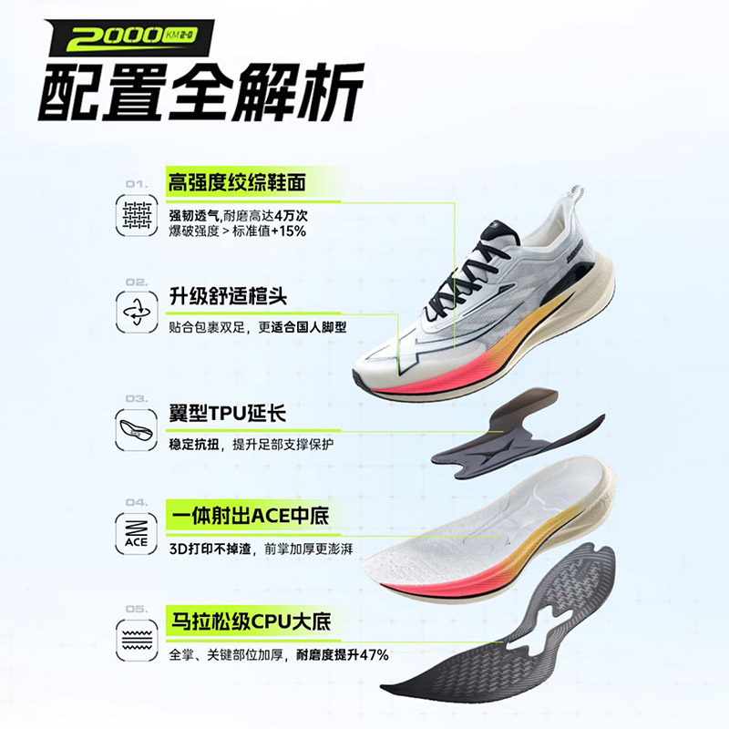 特步两千公里二代跑步鞋男鞋网面透气运动鞋秋季新款马拉松慢跑鞋