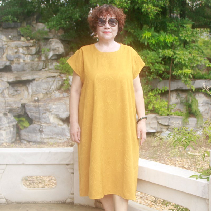 中老年夏季中长款连衣裙加肥大码200斤胖妈妈装宽松遮肚A字休闲裙