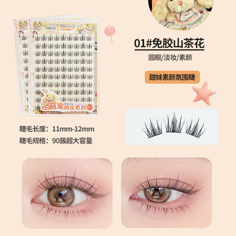 萌睫尚品萌宠甜妹淡颜山茶花眼睫毛!免胶大容量假睫毛少女自然