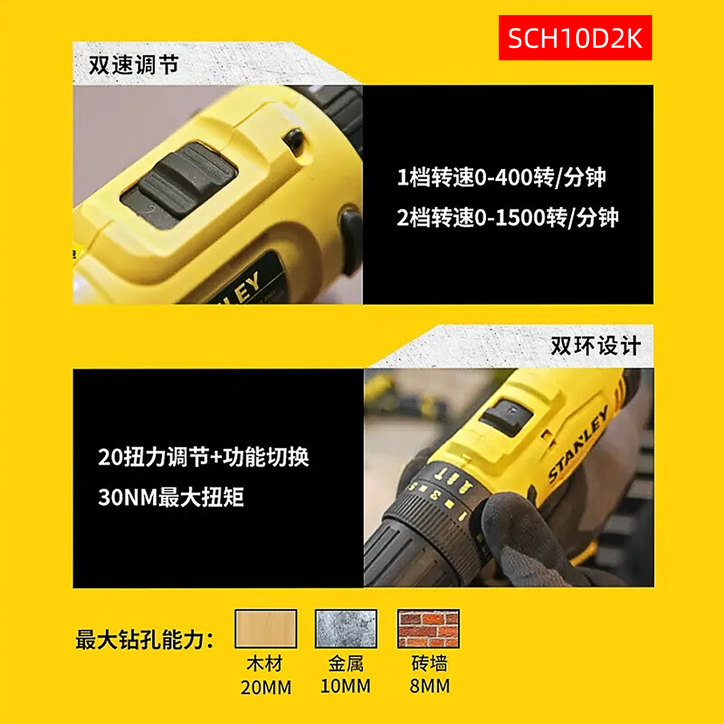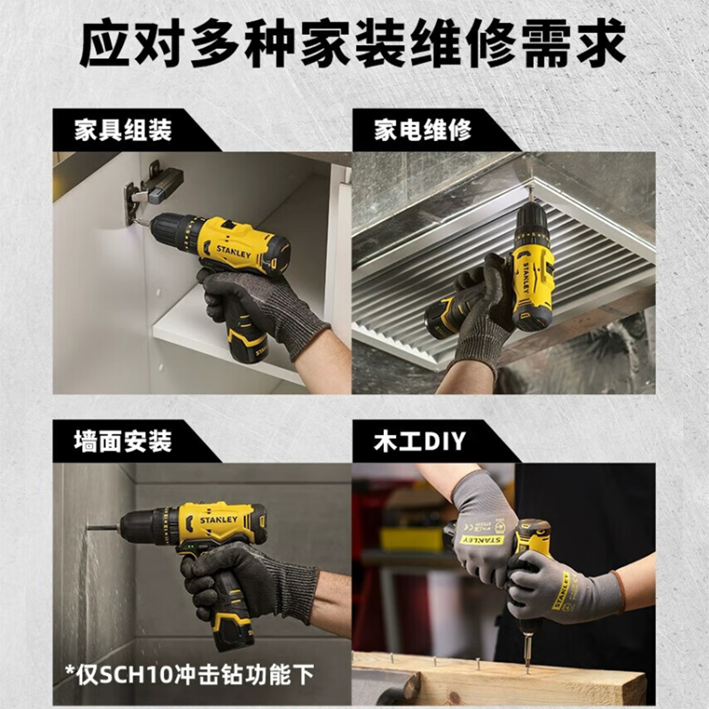 史丹利12V锂电冲击钻家用充电式手电钻电动螺丝刀配件充电器电池
