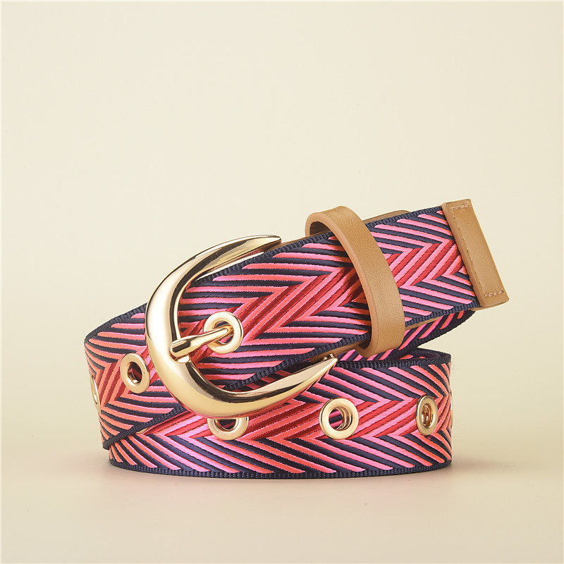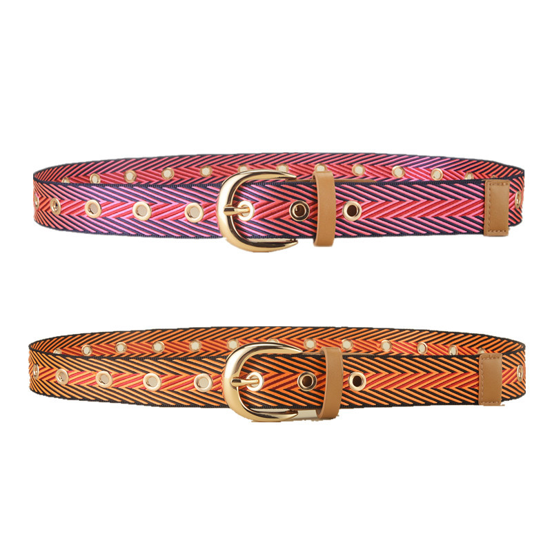 新款帆布编织腰带 欧美条纹针扣男女士气眼皮带 青年学生裤带