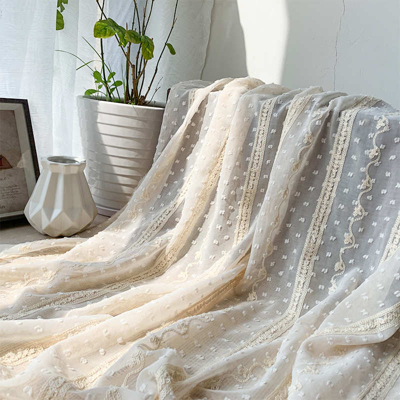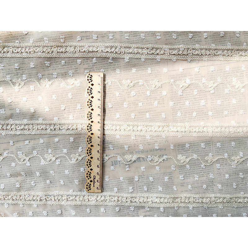 条纹绣线雪纺毛毛球点点绣花面料春夏新品小清新梭织提花剪花布料