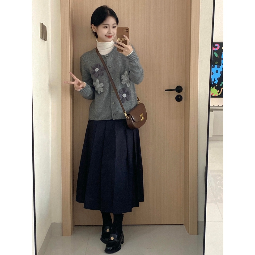 秋季气质一整套ootd穿搭盐系轻熟高级感御姐毛衣开衫半身裙套装女