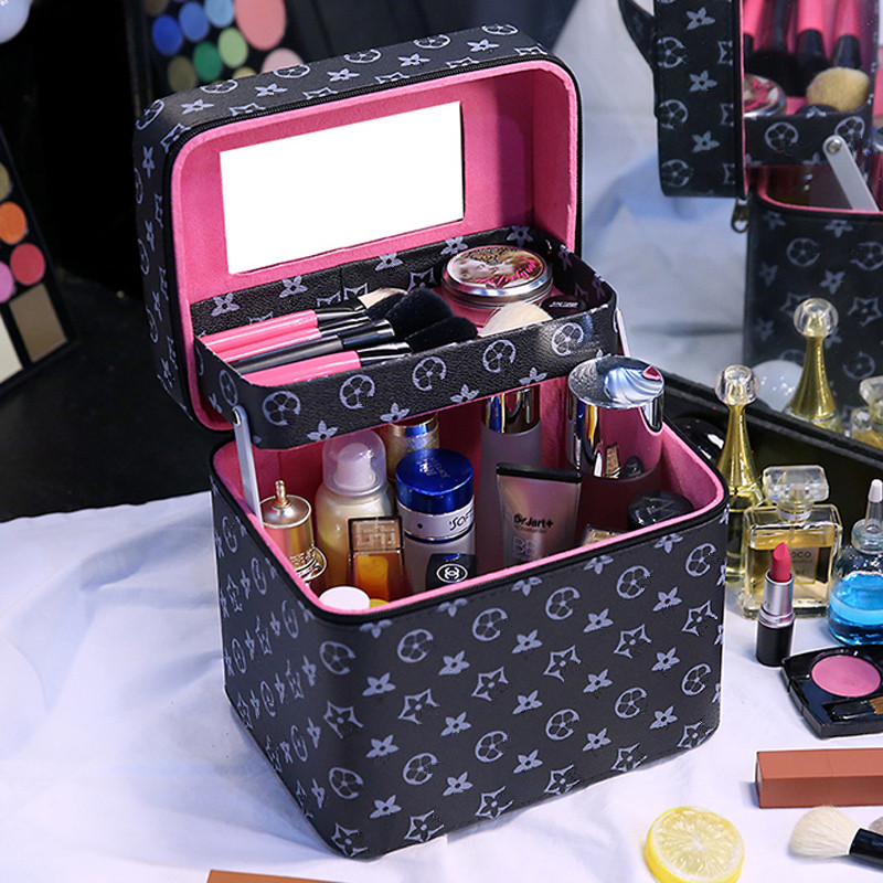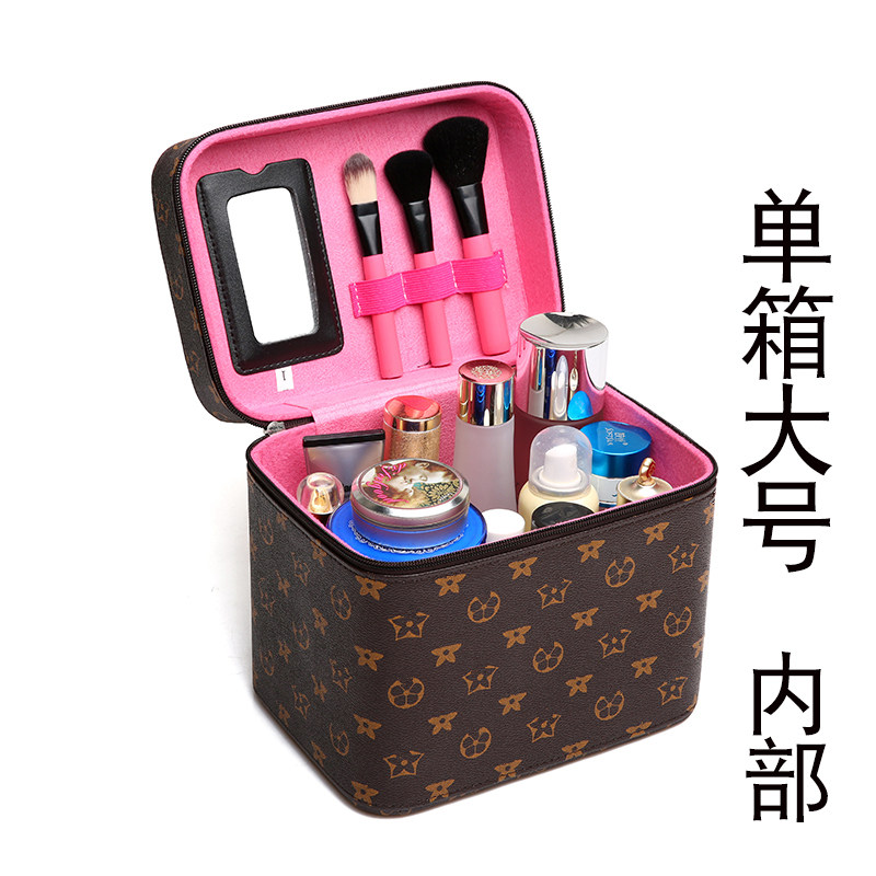 轻奢高级化妆包2025新款防水化妆品收纳盒便携式箱男女小众带镜子