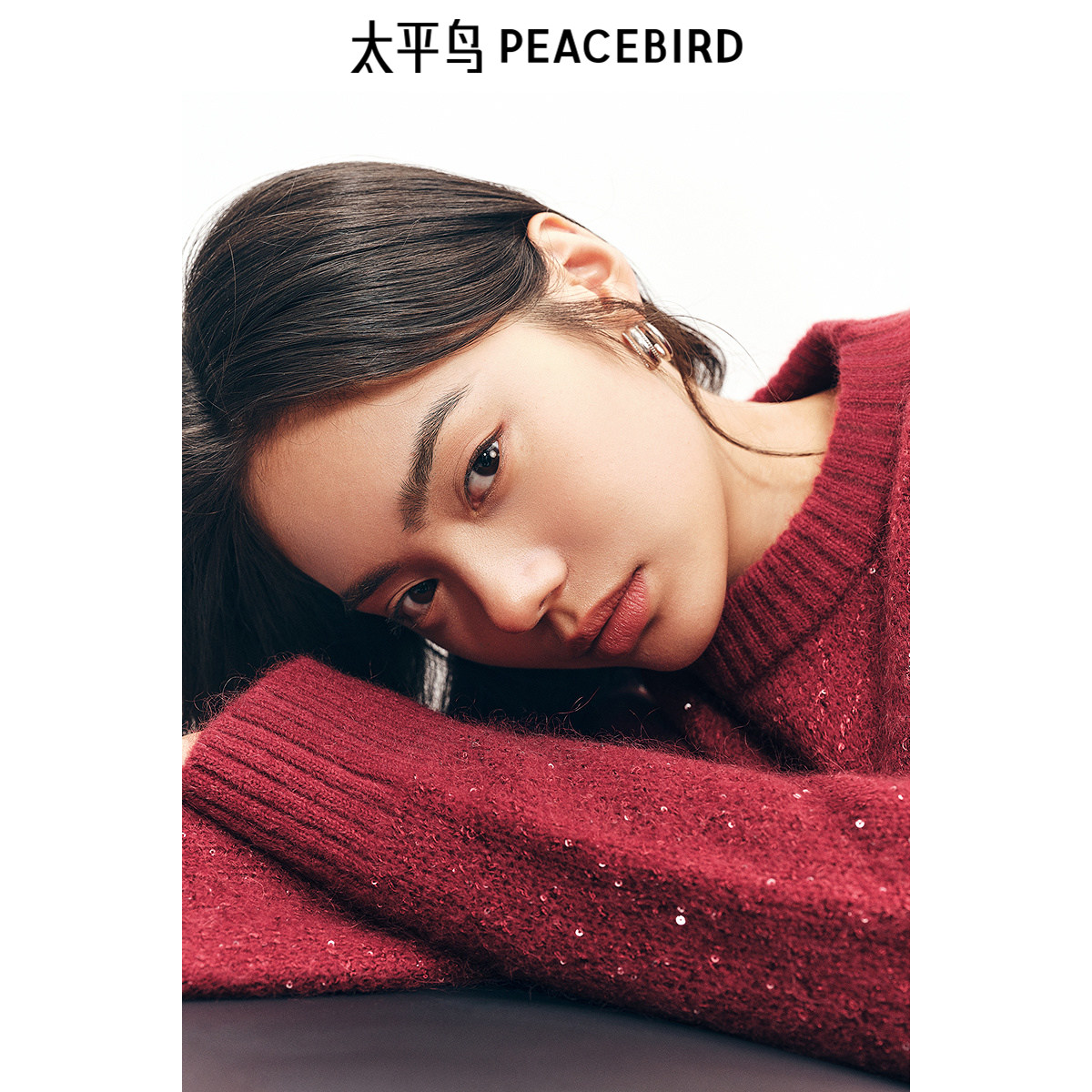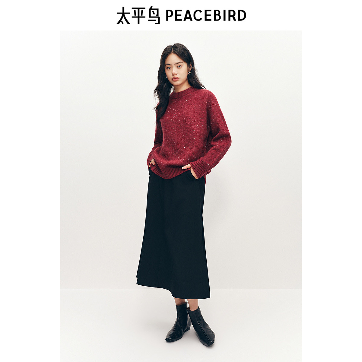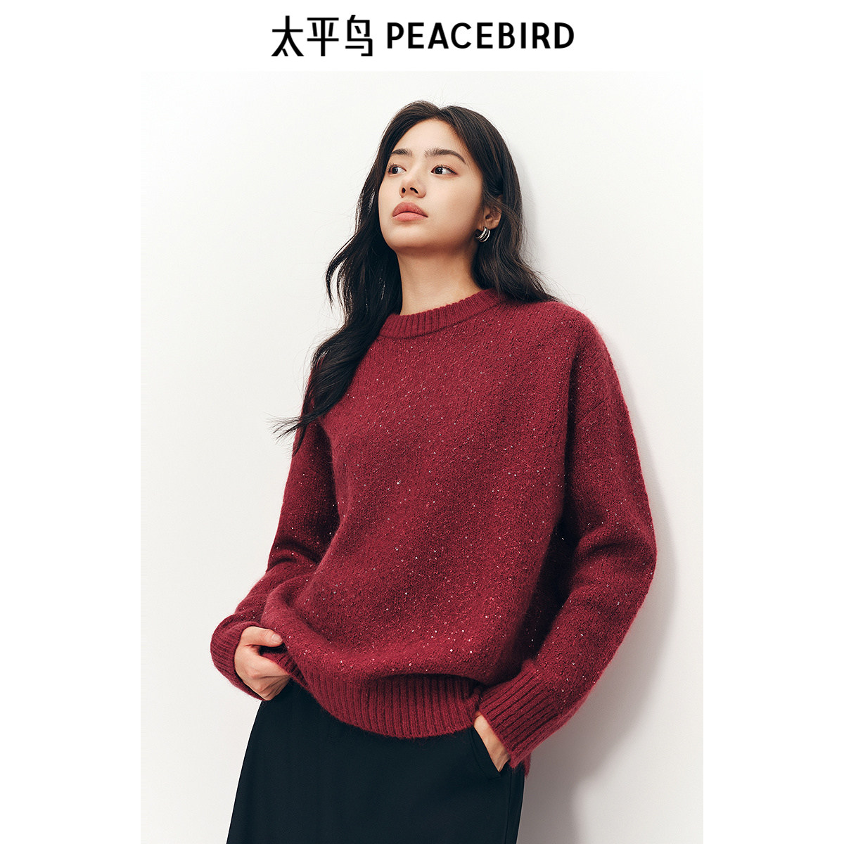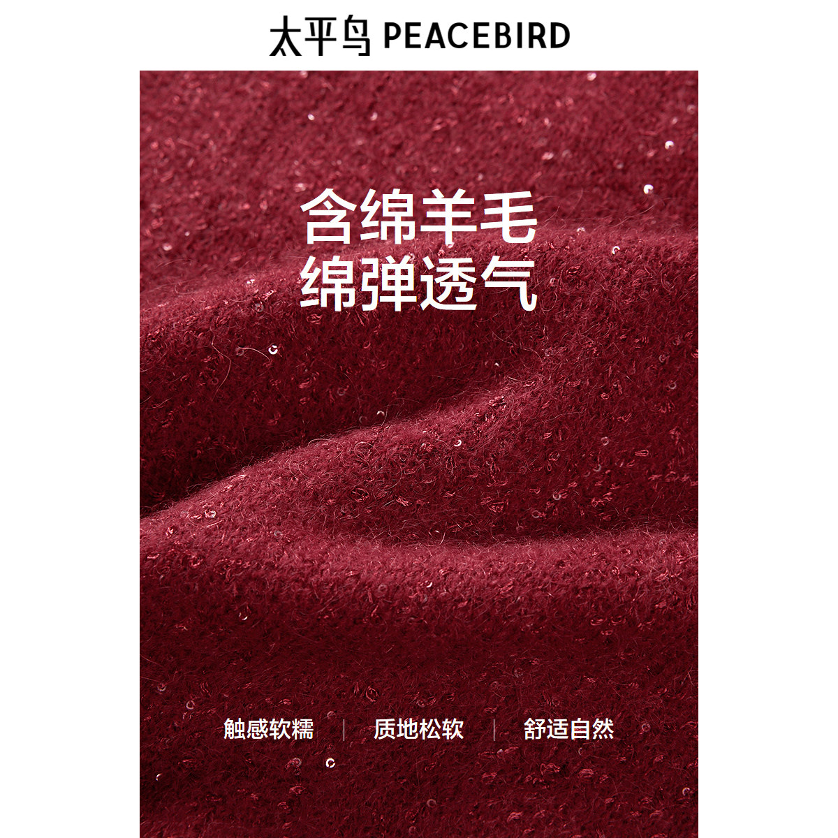 【断码秒杀】太平鸟马海毛氛围感亮片红色毛套衫安克拉红毛衣内搭