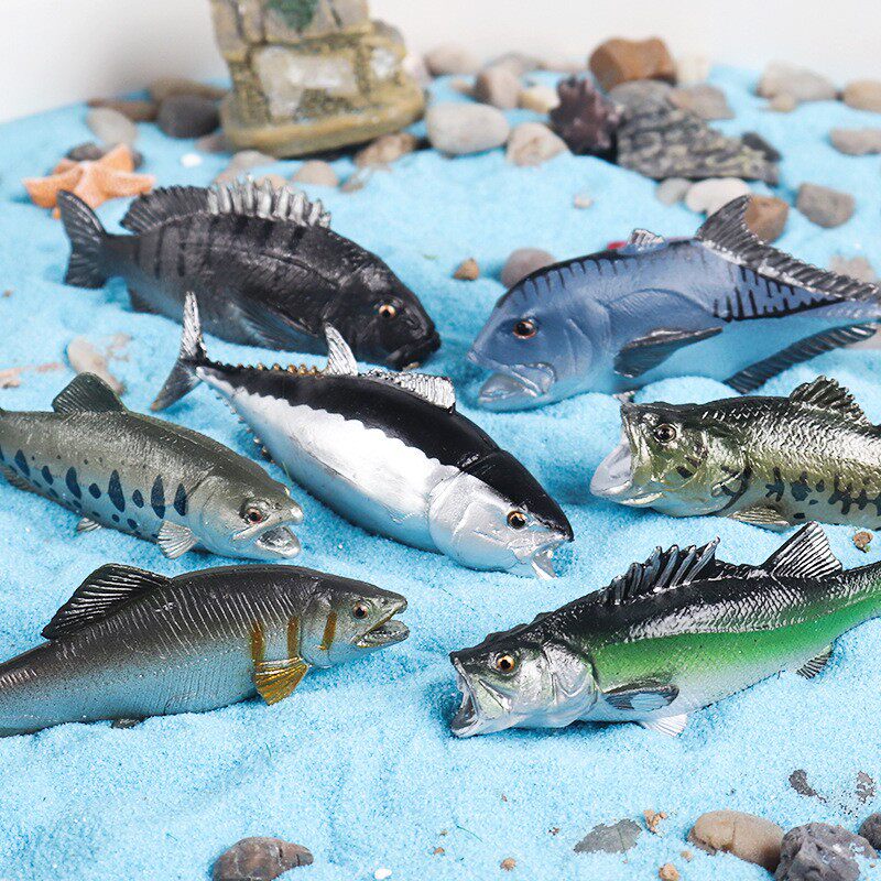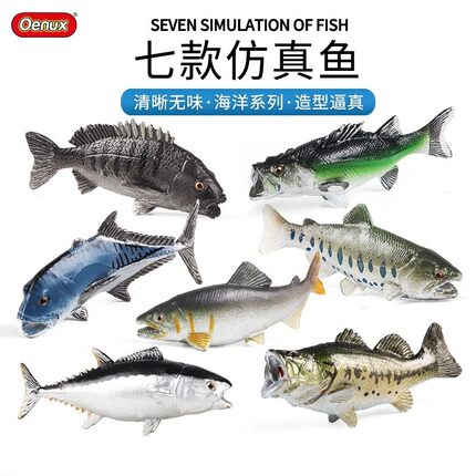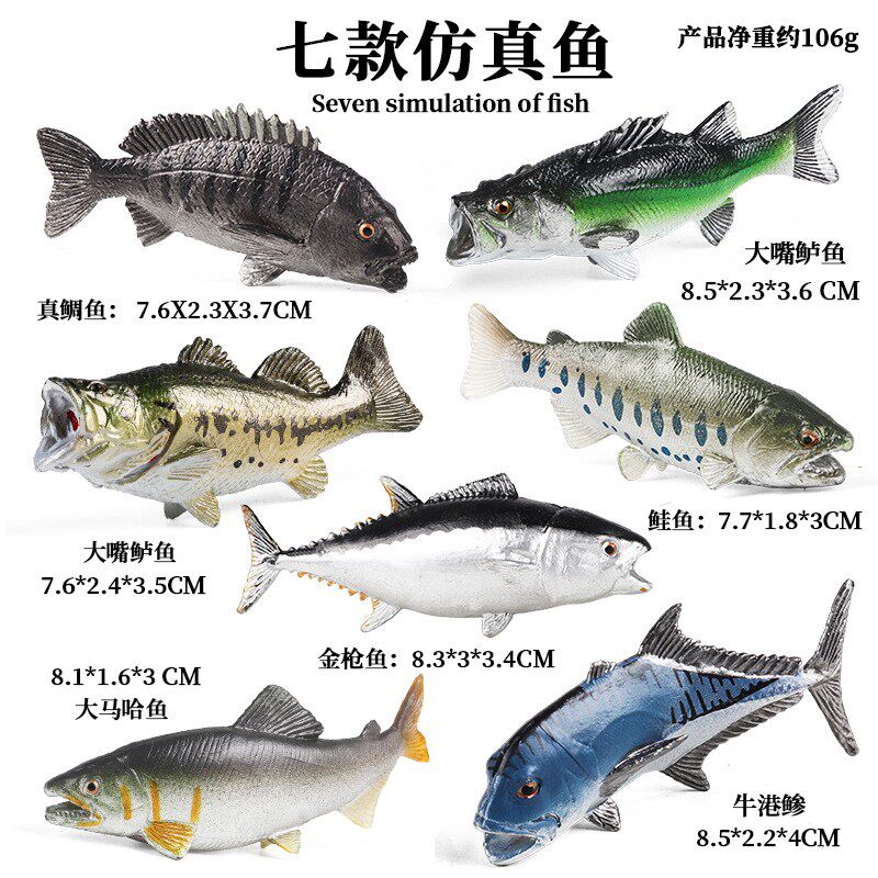仿真海洋动物鱼模型儿童玩具鲑鱼大马哈鱼大嘴鲈鱼金枪鱼鱼缸造景