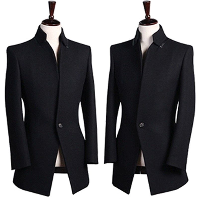 男装羊毛呢大衣新款韩版中青年修身中长款一粒扣加厚夹克风衣外套