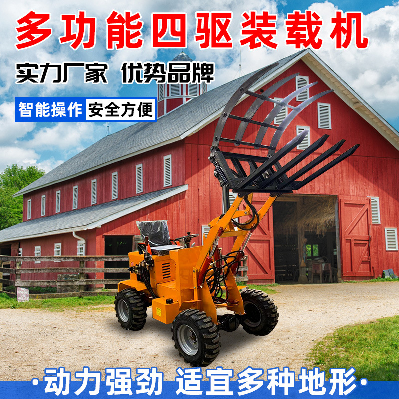 轮胎式电动装载机农用推土机养殖场家用四轮柴油小铲抓草车厂家