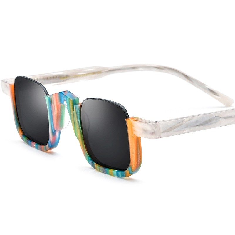 拼色板材多色方形墨镜男女通用尼龙太阳镜明星半框司机开车眼镜