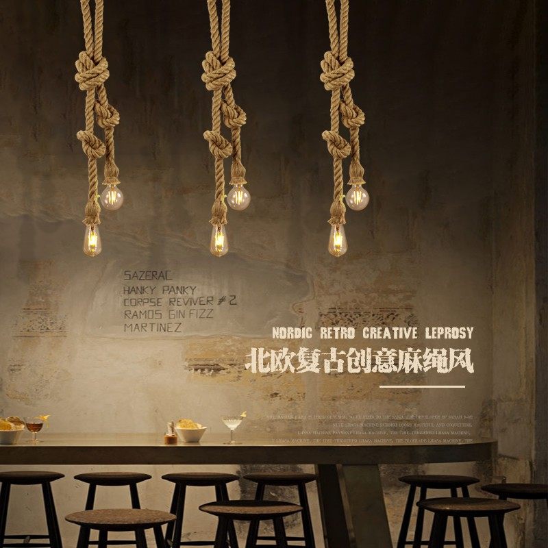工业风单头创意个性吧台奶茶店复古餐厅装饰loft服装店麻绳吊灯