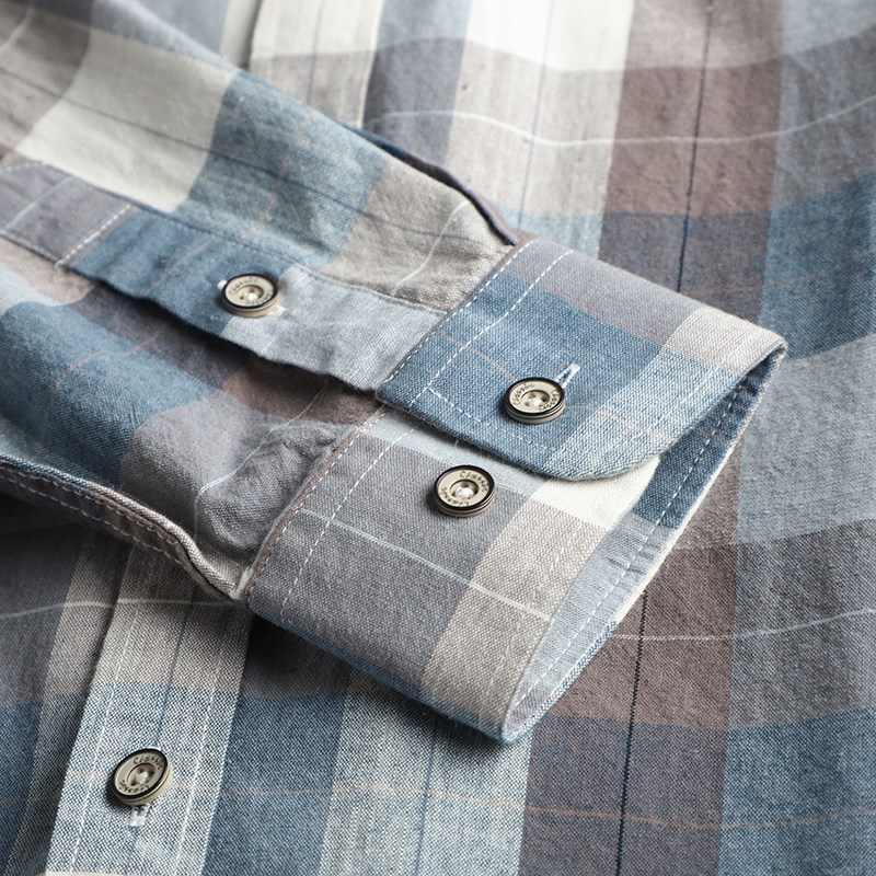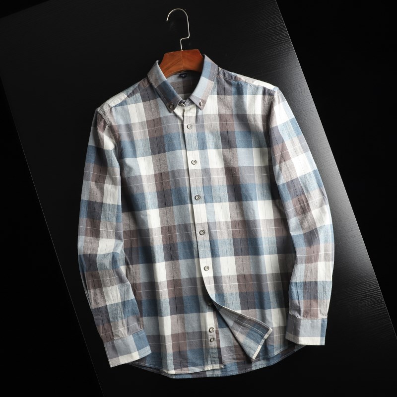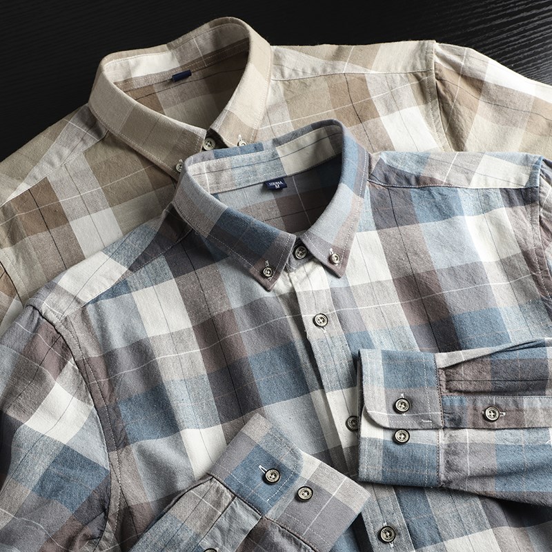 舒适百搭!精梳磨毛全棉!色织格纹!男士休闲撞色格子长袖衬衫潮