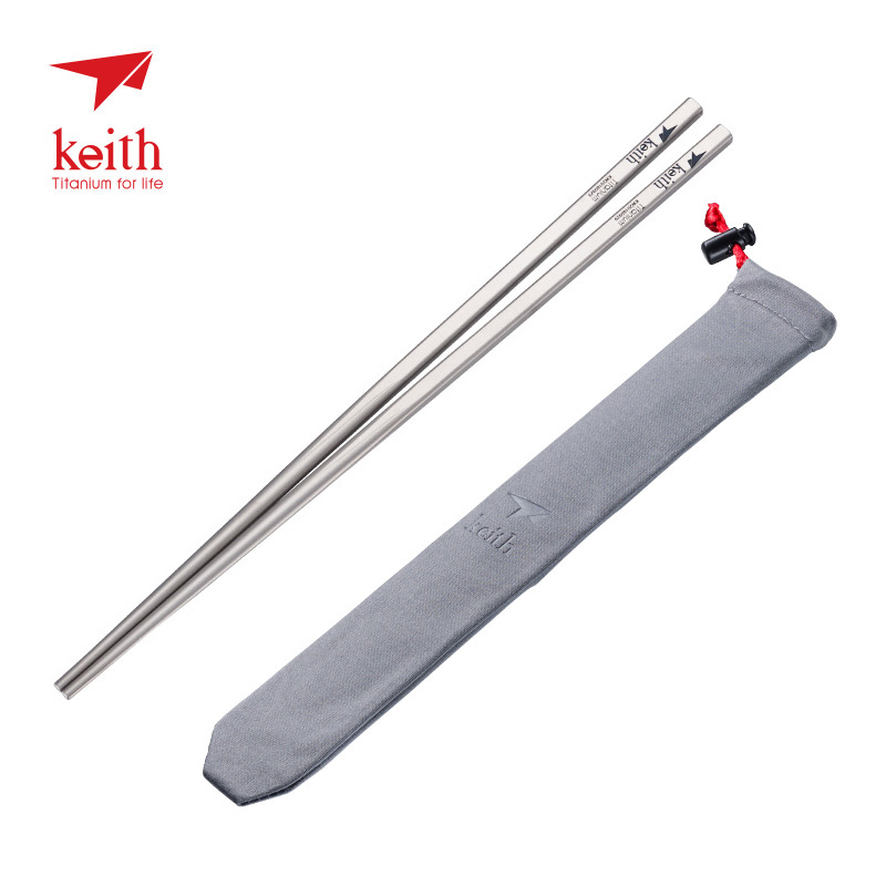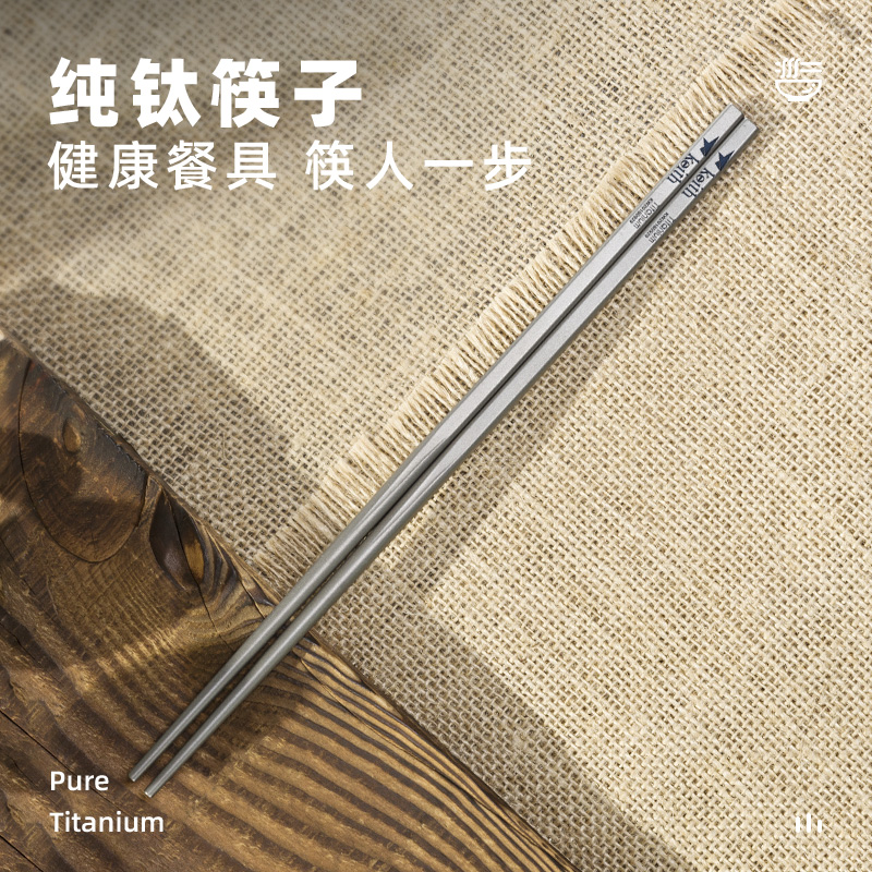 keith铠斯纯钛实心筷子方形金属防滑便携餐具中式家庭装 钛筷子
