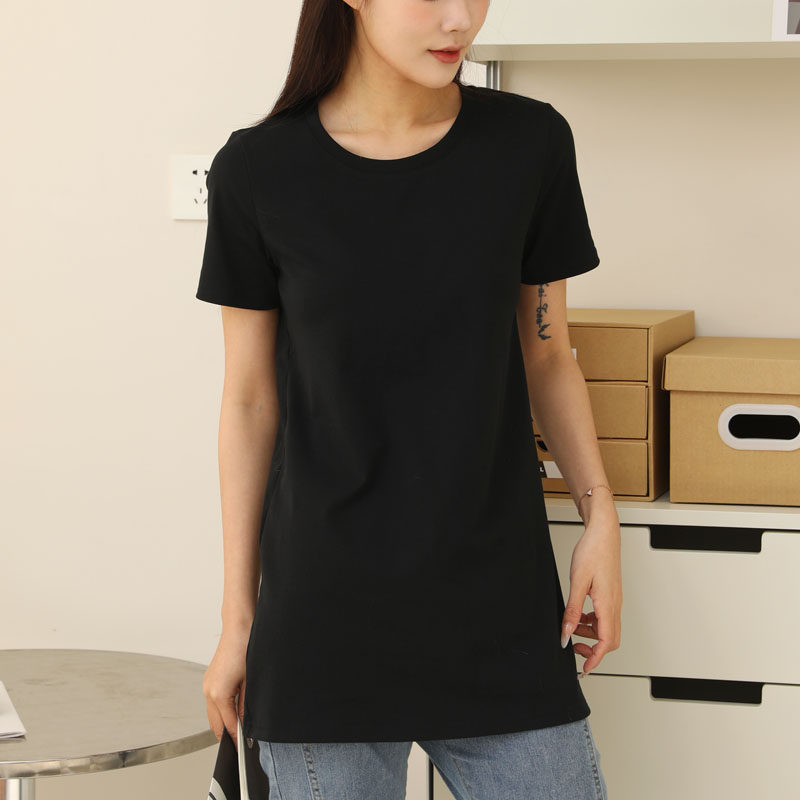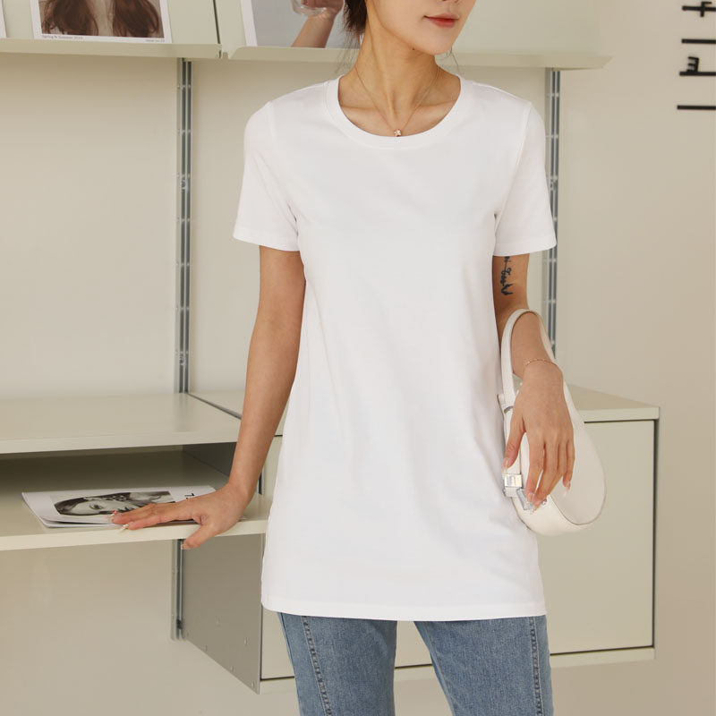 纯色短袖中长款t恤女宽松新款夏季圆领纯棉正肩遮屁股多巴胺上衣