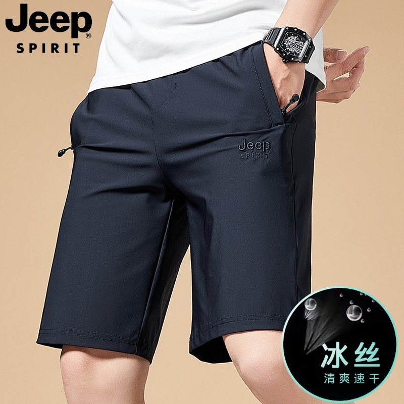 吉普冰丝休闲短裤男士夏季薄款直筒弹力透气宽松运动五分中裤
