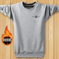秋冬男士纯棉保暖长袖T恤加绒加厚宽松大码休闲卫衣爸爸装打底衫