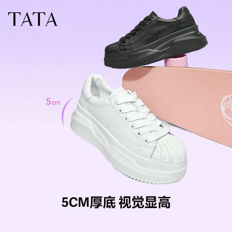 TATA他她贝壳鞋女厚底小白鞋女透气板鞋百搭2024春季新款W8UA1AM3