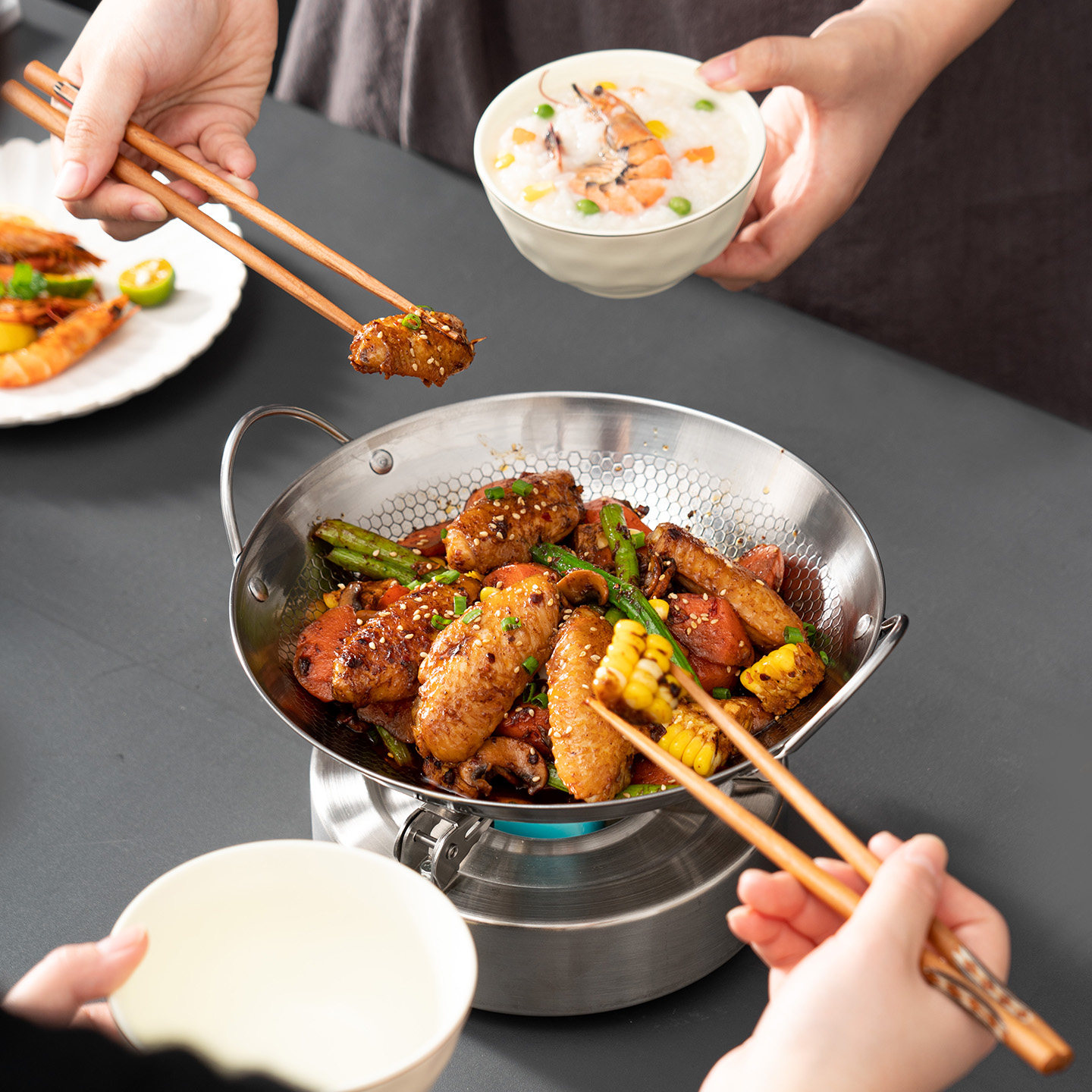 onlycook 家用不锈钢双耳干锅锅具一套酒精炉子专用小火锅 锅仔煲