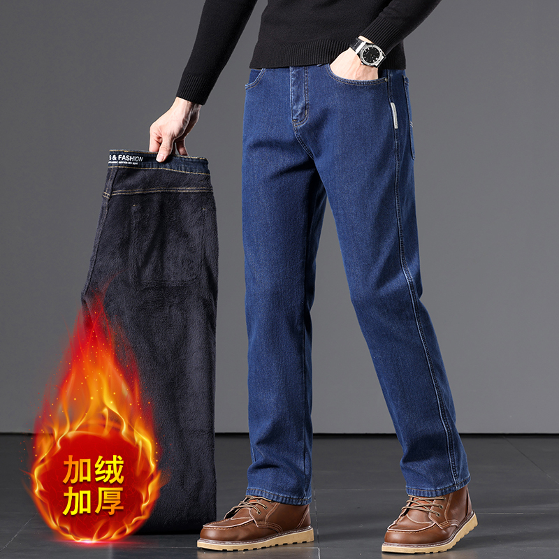 XUB真维斯男装2025冬季新款加绒加厚保暖舒适直筒男士牛仔裤