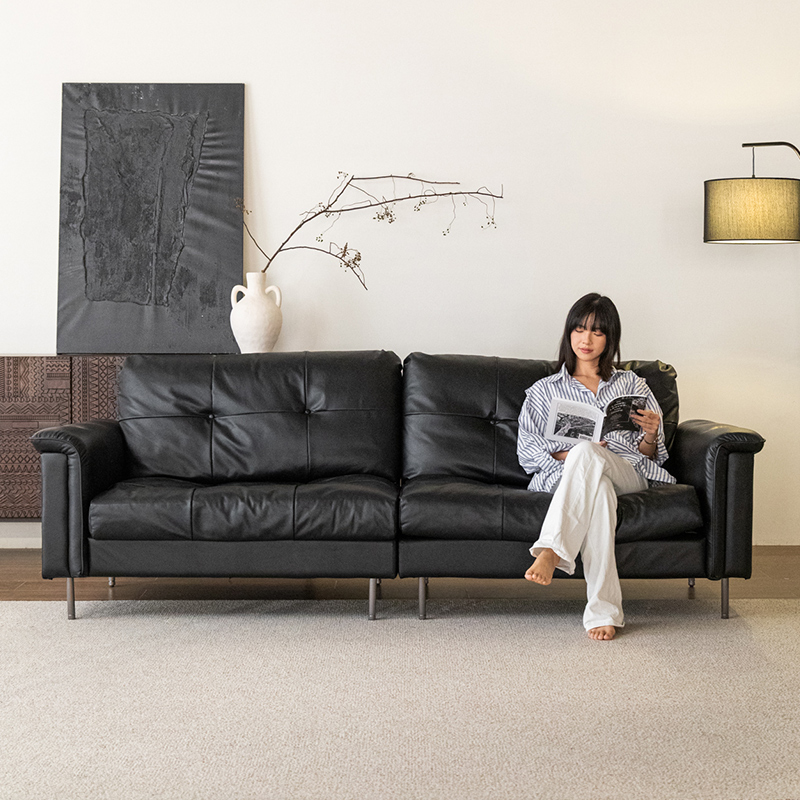 MIZEO 米卓/黑色星云客厅小户型皮艺双人油蜡真皮头层牛皮沙发