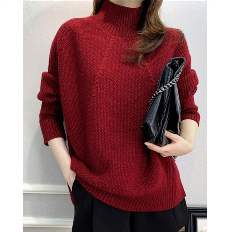 加绒加厚冬季毛衣半高领女针织衫打底衫洋气宽松时尚慵懒风上衣厚