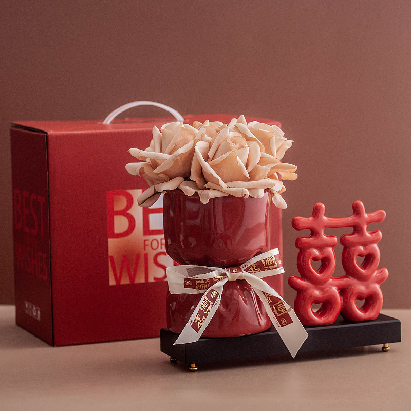 喜字摆件结婚订婚新婚婚房装饰摆台布置花束花瓶桌面小摆件礼物