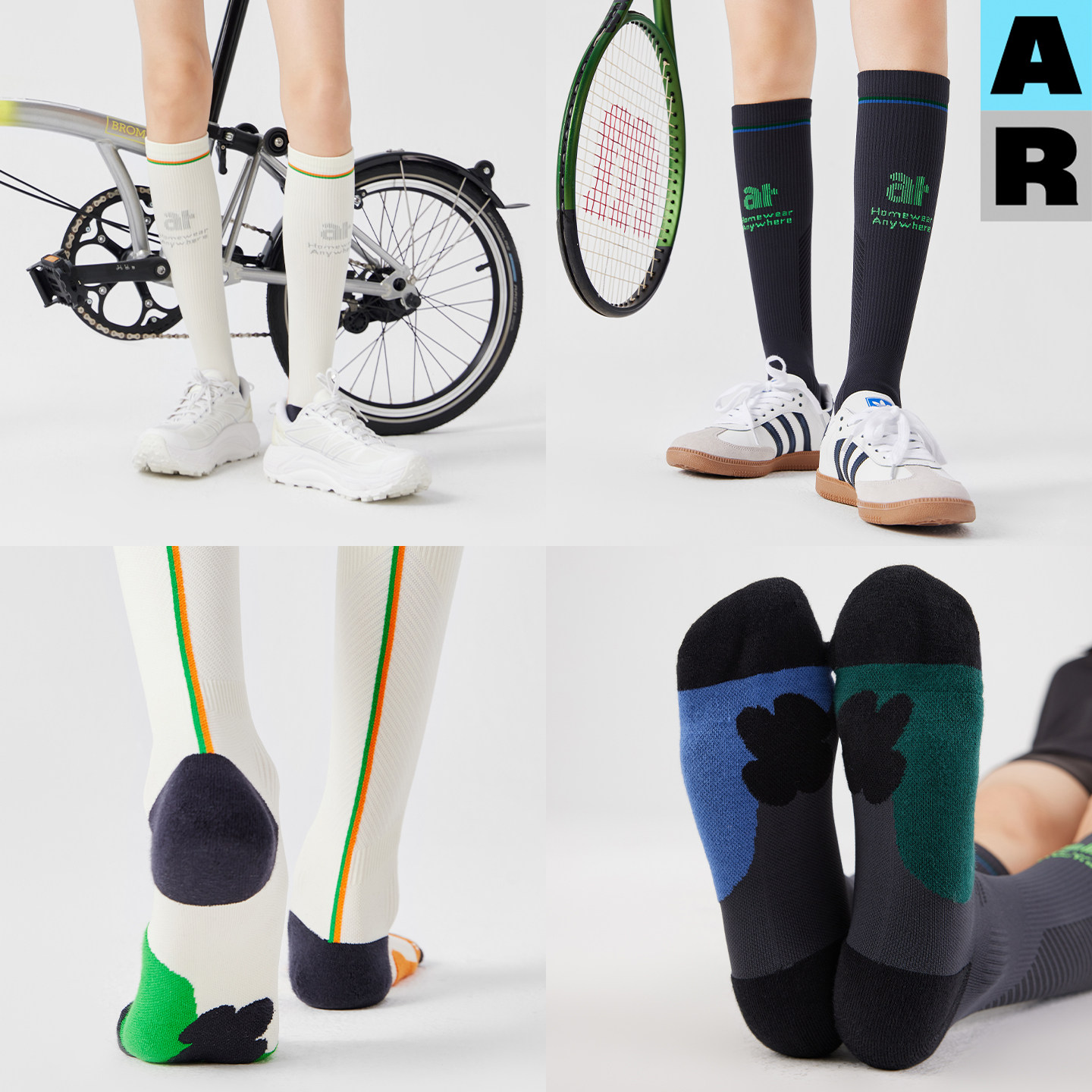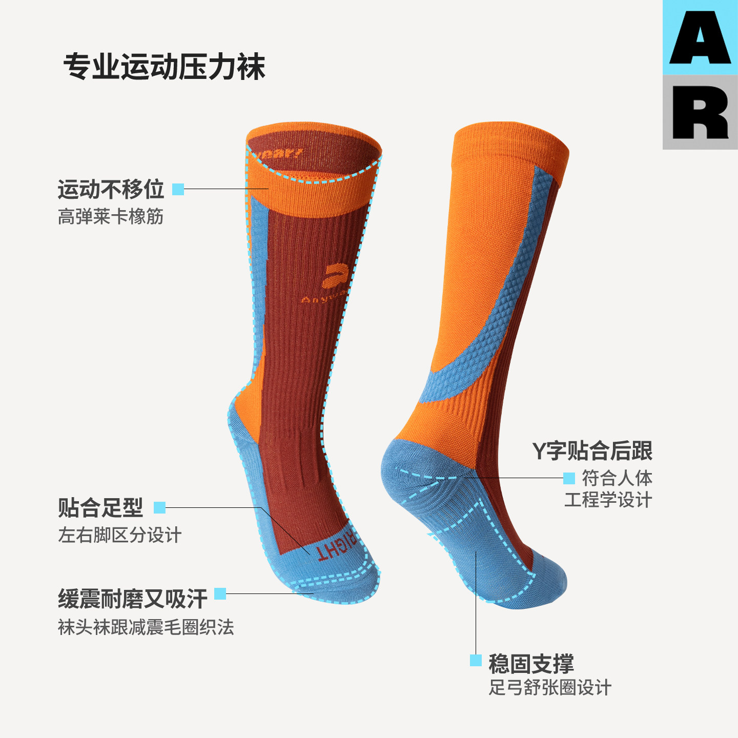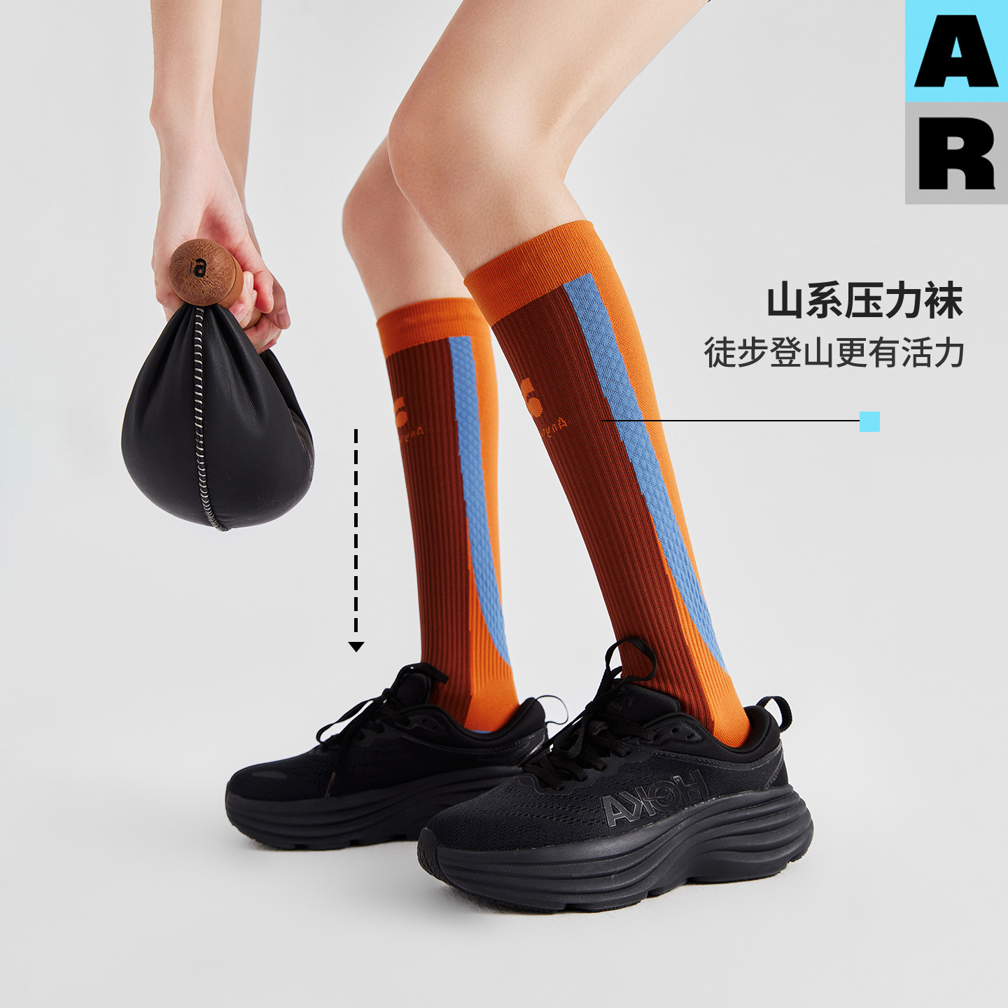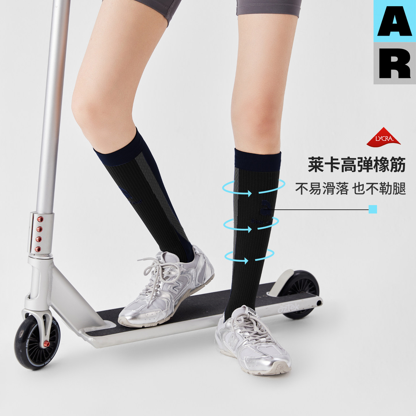 AR透气拼色长腿袜专业运动压力袜山系户外徒步登山跑步骑行小腿袜