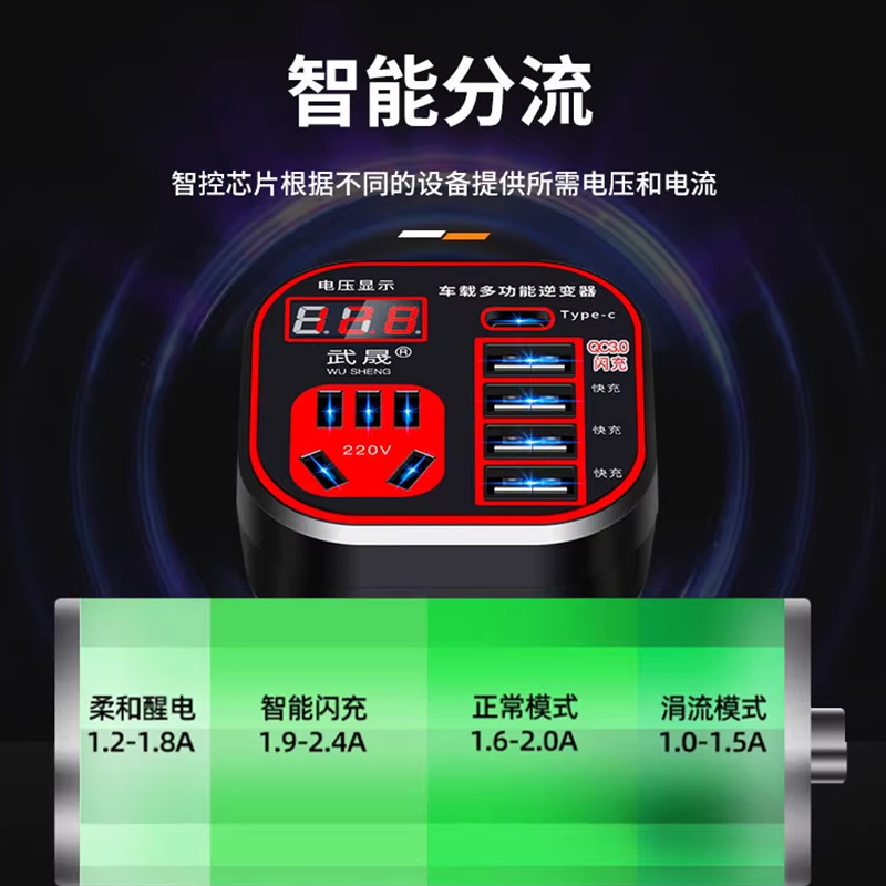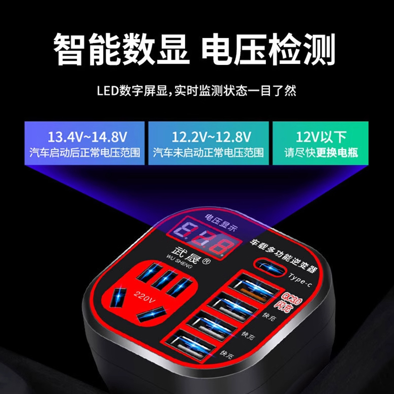 车载逆变器12v24v转220V大功率快充汽车电源插座转换器变压充电器