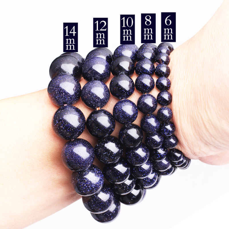 晶韵天然蓝砂石满天星蓝沙石圆珠男女情侣手链招财单圈水晶饰品女