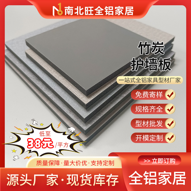 竹木纤维轻奢墙板碳晶板护墙板免漆木饰面板自装生产防火木饰面