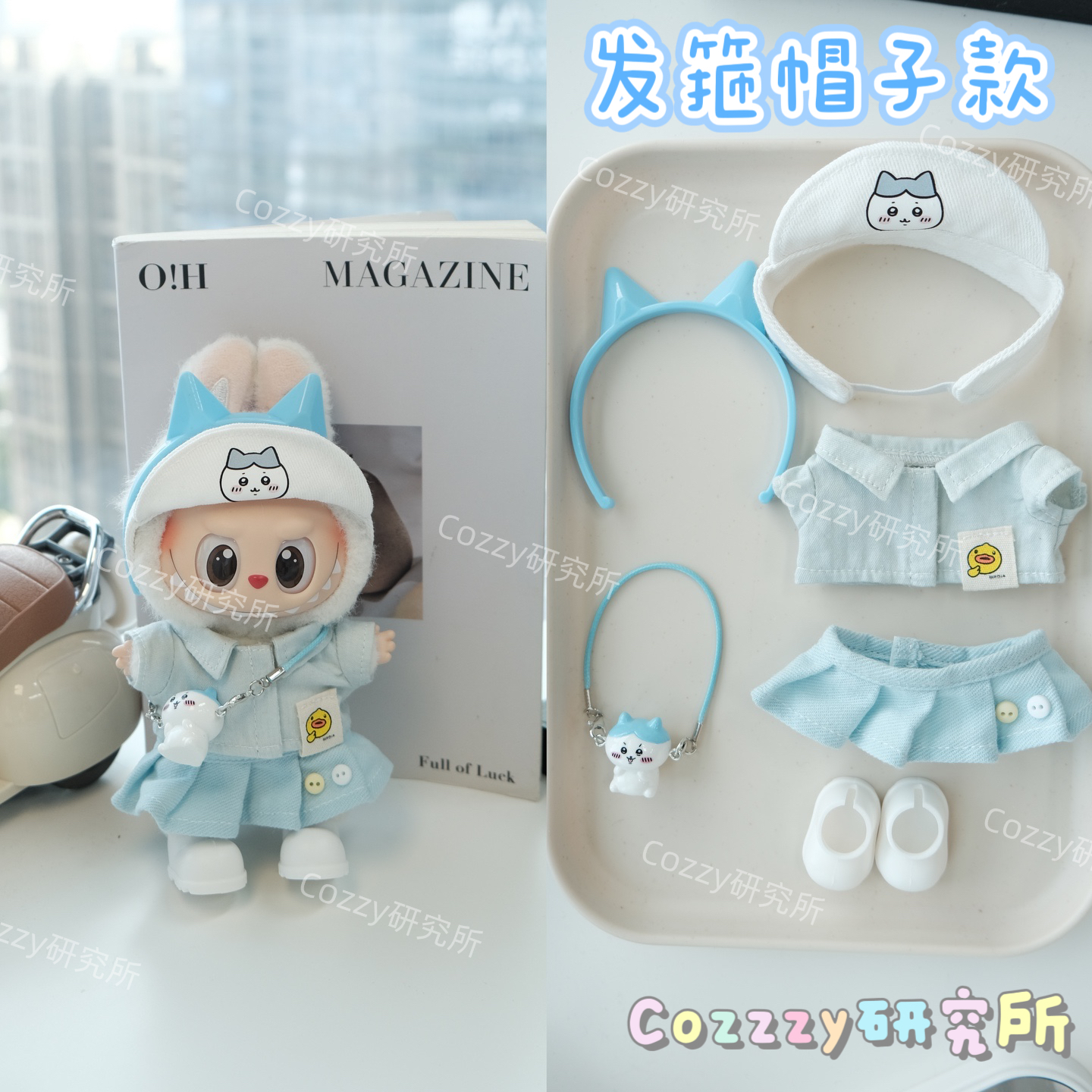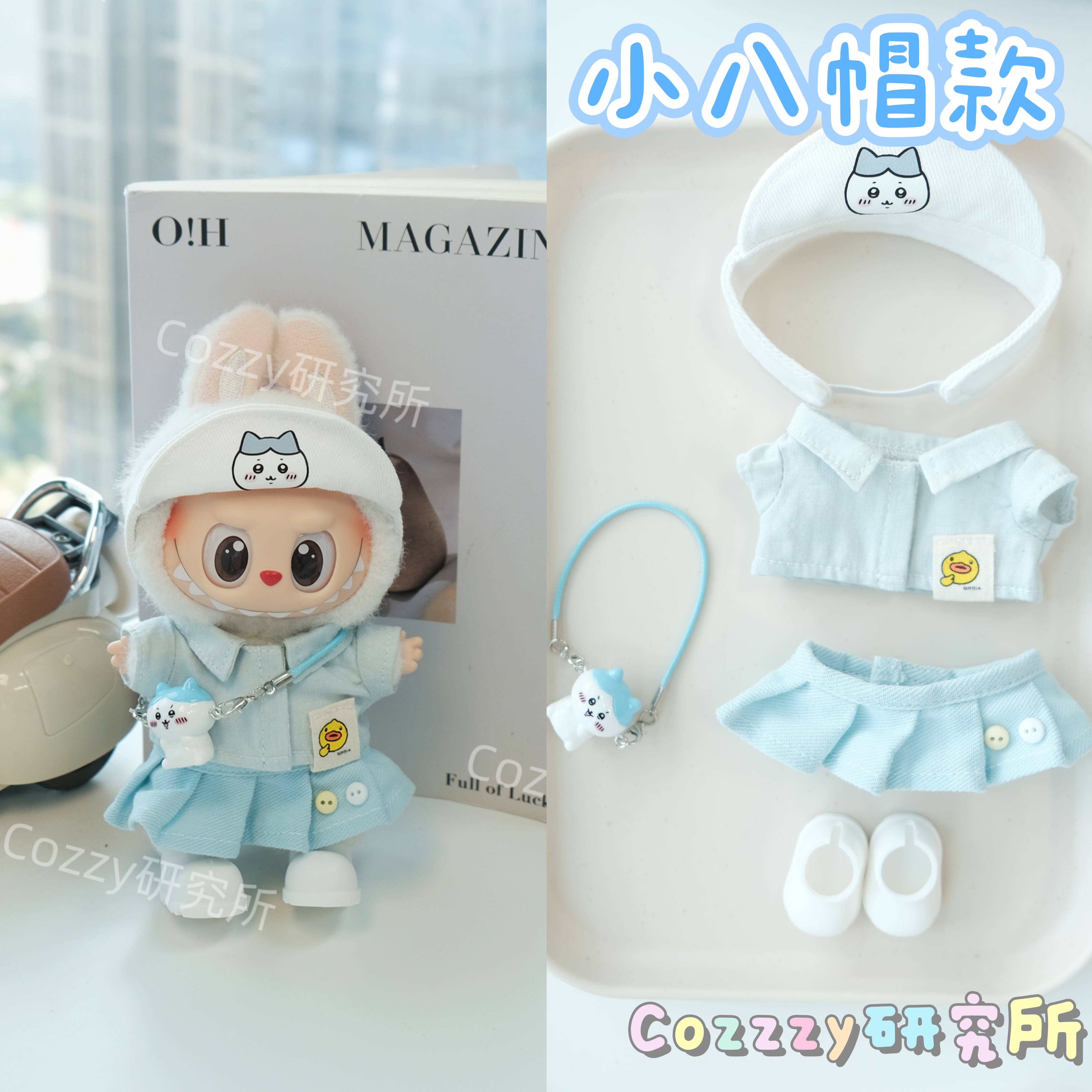 Labubu3.0娃衣蓝色元气小八套装17cm搪胶盲盒拉布布衣服娃衣帽