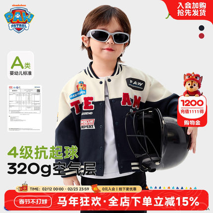 汪汪队男童棒球服外套春秋2026春季男宝宝机车服外套帅气潮酷上衣