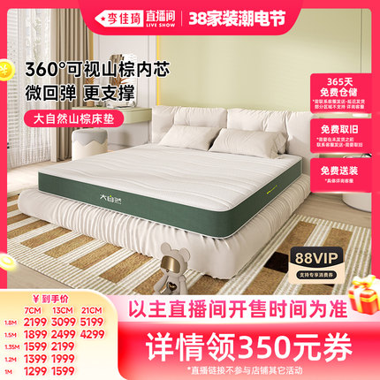 【李佳琦宠物&家装潮电节】大自然官方山棕家用双人卧室植物床垫