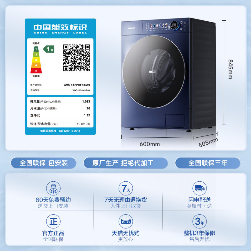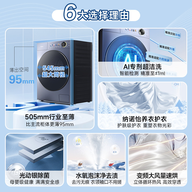松下小薄荷S5超薄10kg全自动家用洗烘一体滚筒洗衣机纳诺怡M2SA1
