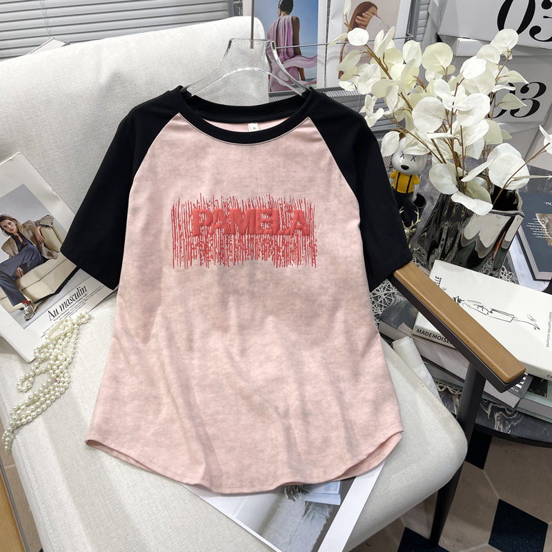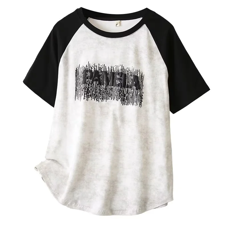 胡子叔大码女装2025夏季新款时尚显瘦扎染字母拼色短袖T恤上衣