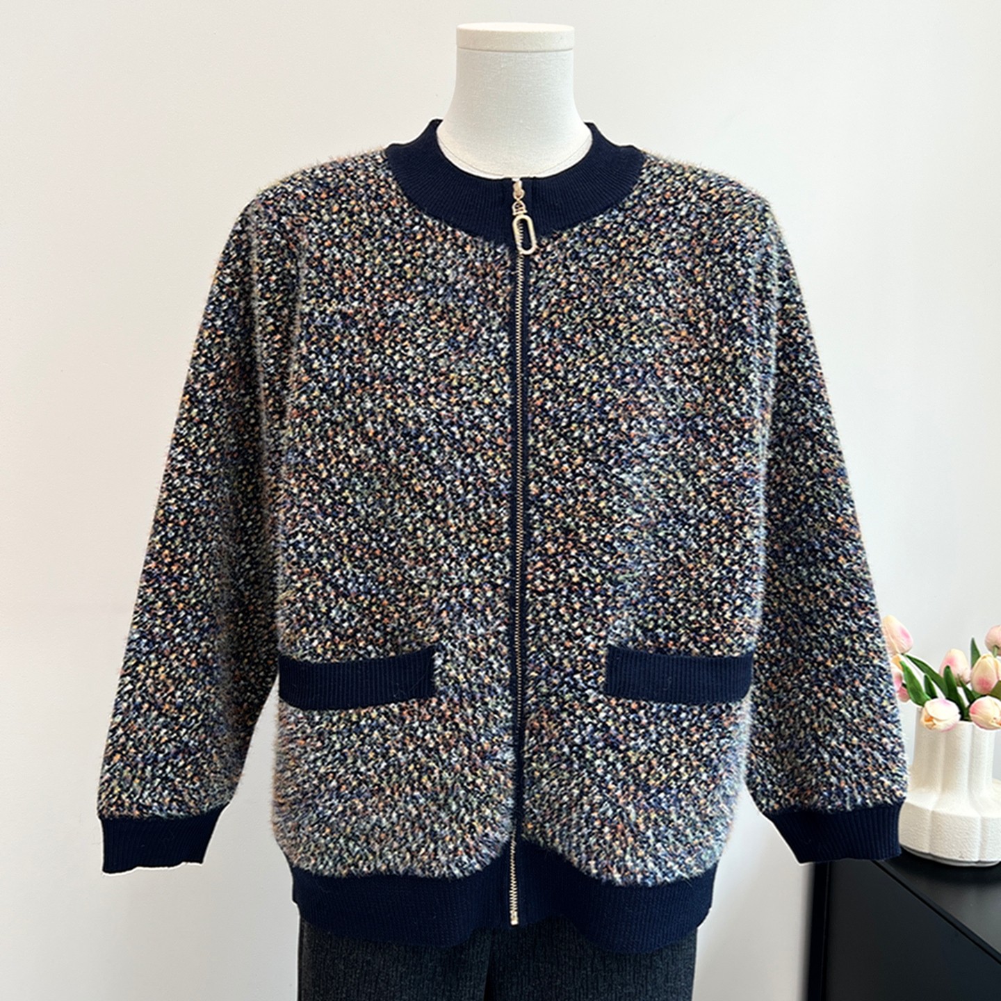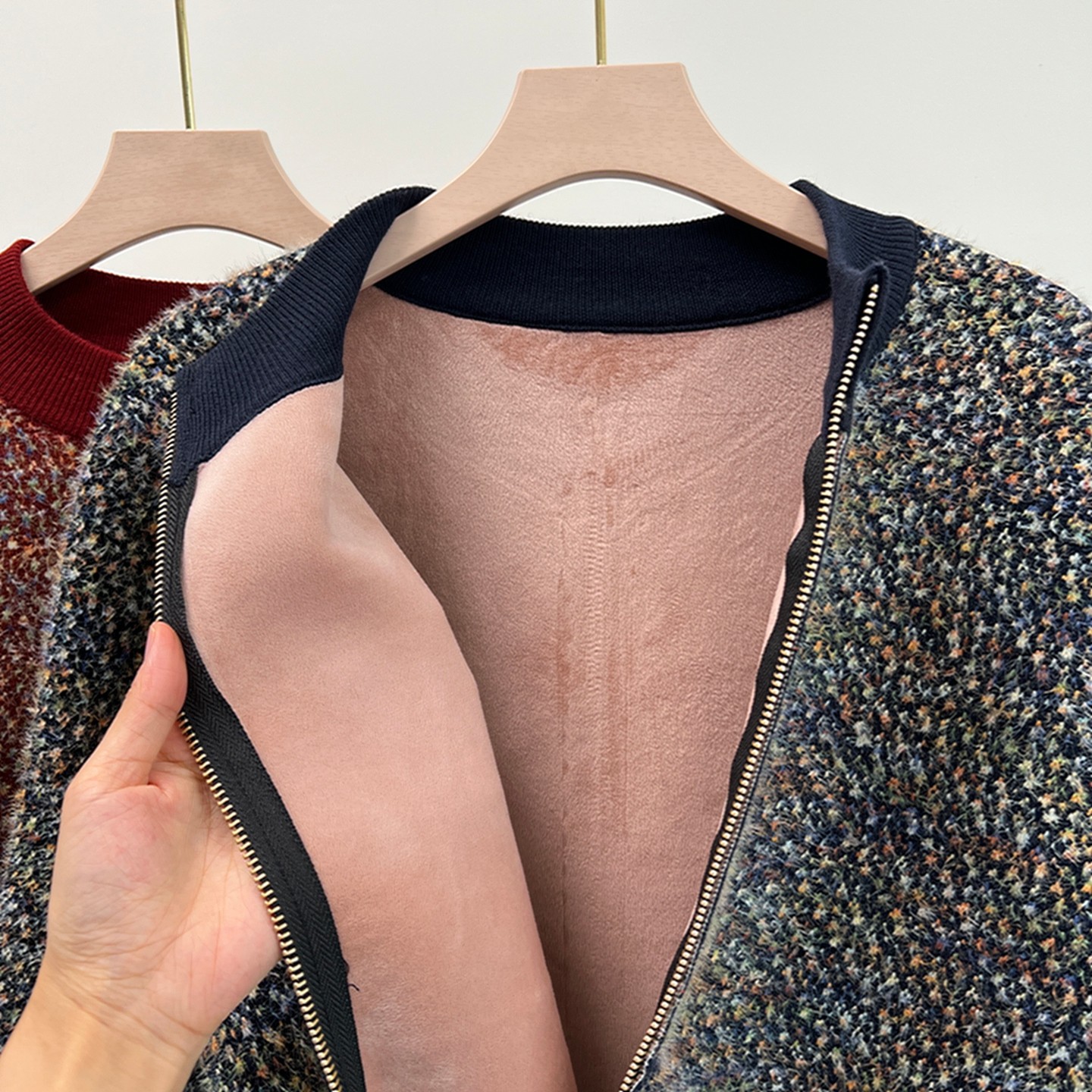 中老年人秋冬加绒保暖外套女老年人妈妈针织开衫新款奶奶冬装衣服