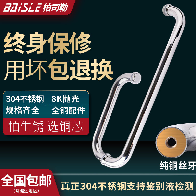 304不锈钢淋浴房拉手卫生间浴室移门把手玻璃门拉手L型加厚扶手
