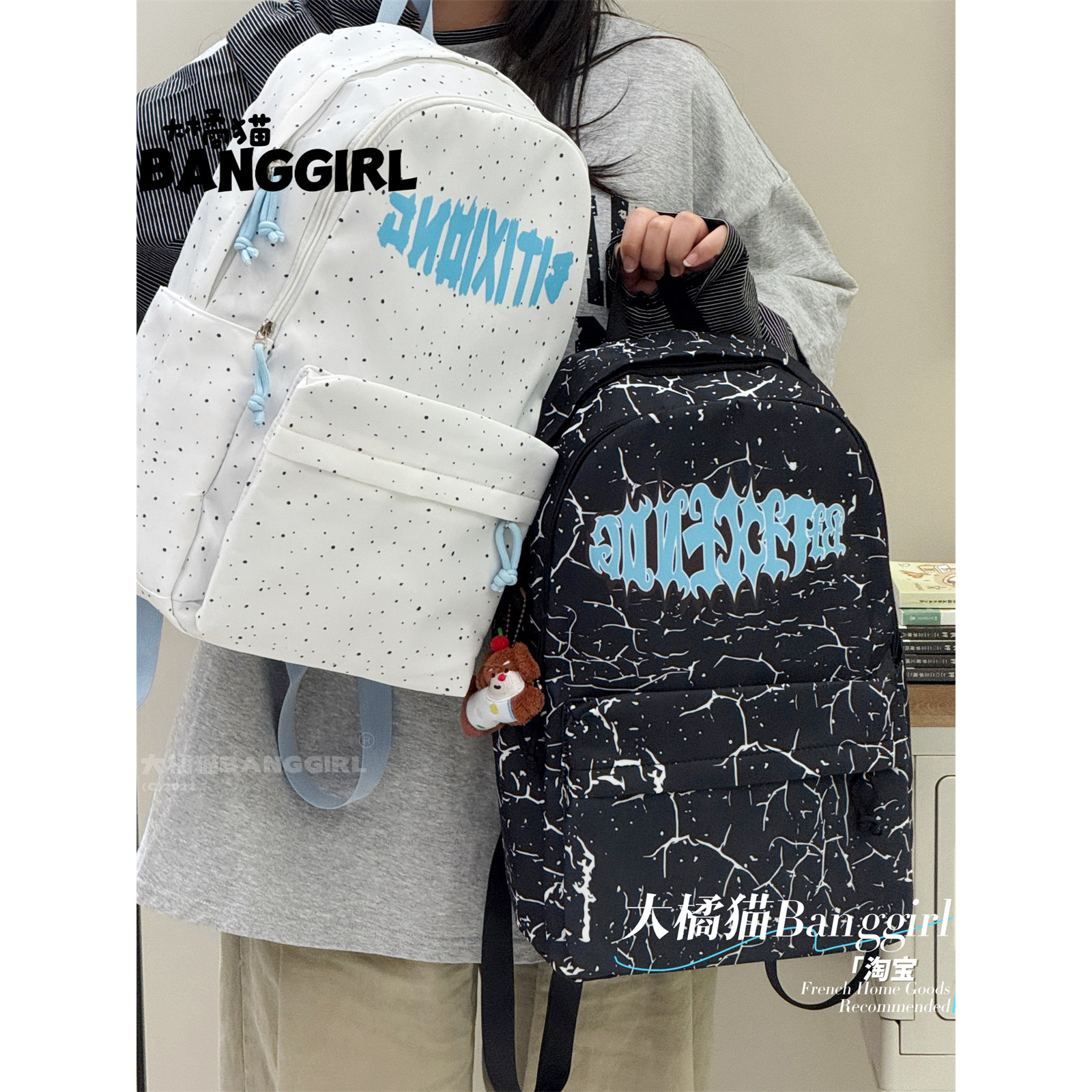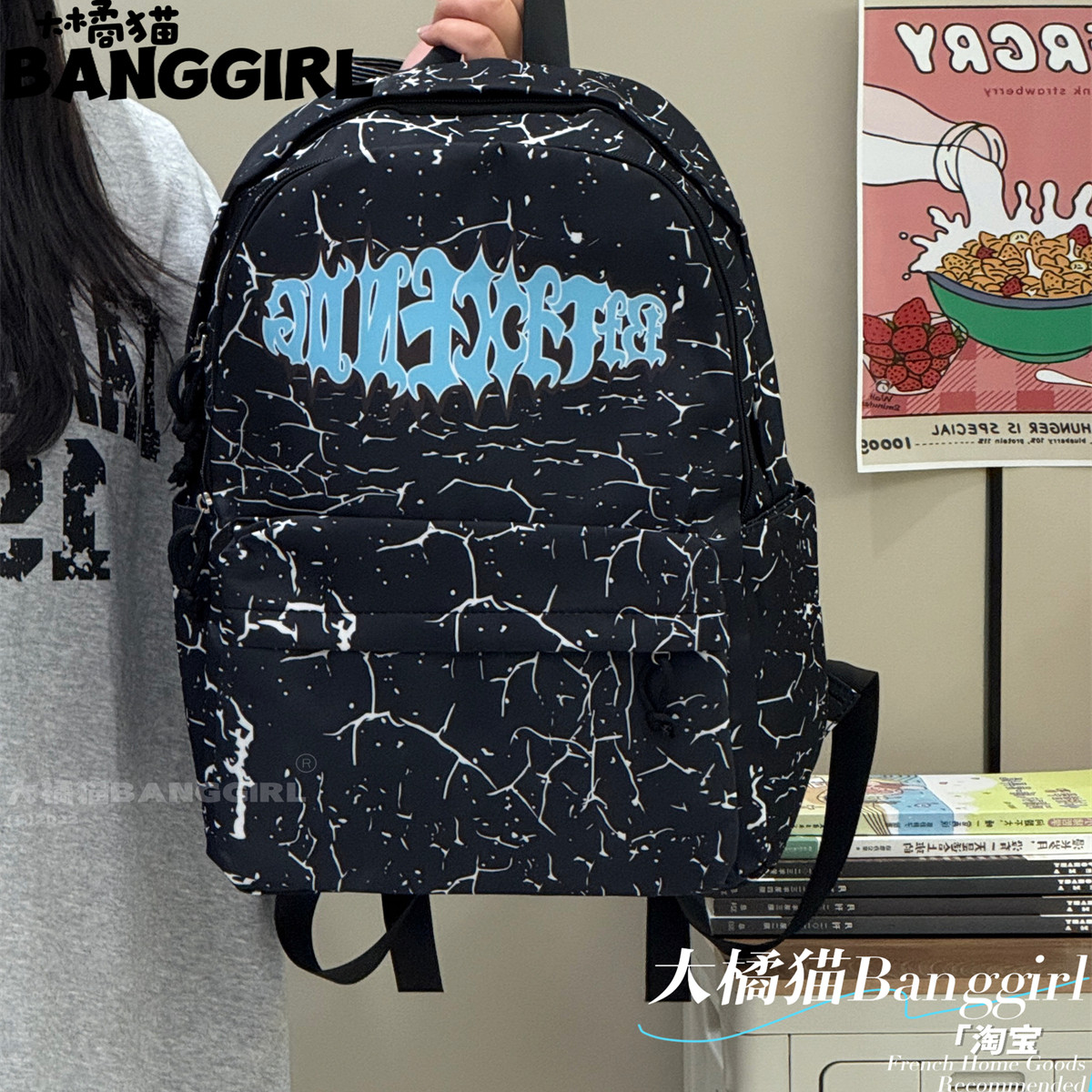 2026美式书包女初高中生印花涂鸦双肩包大学生电脑包男韩版旅行包