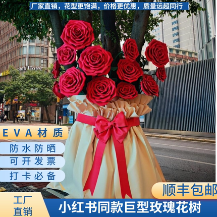 网红大树巨型玫瑰花装饰eva仿真花艺户外抱树上开花造景美陈布置