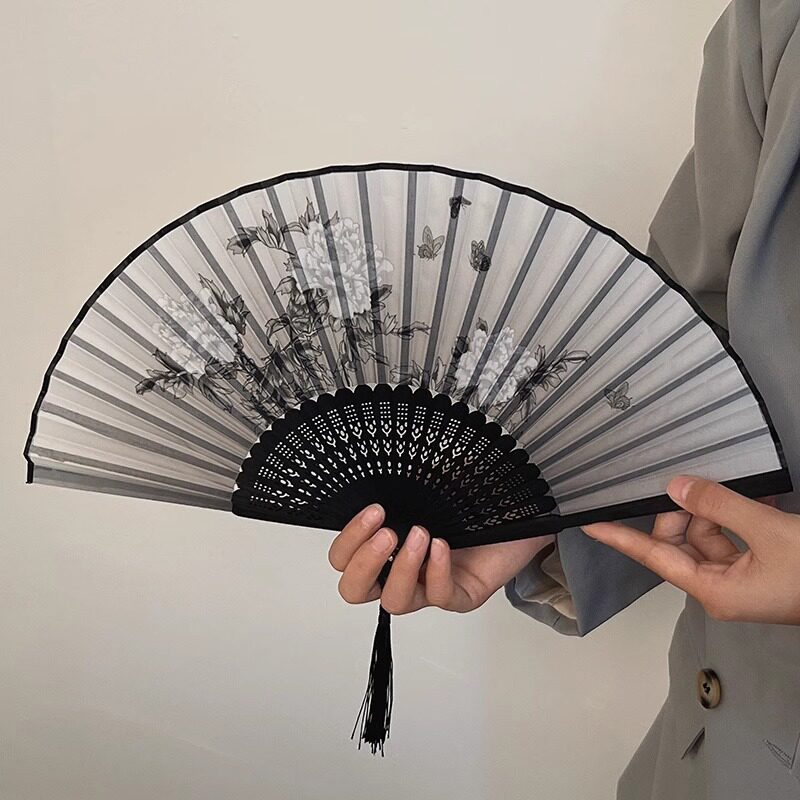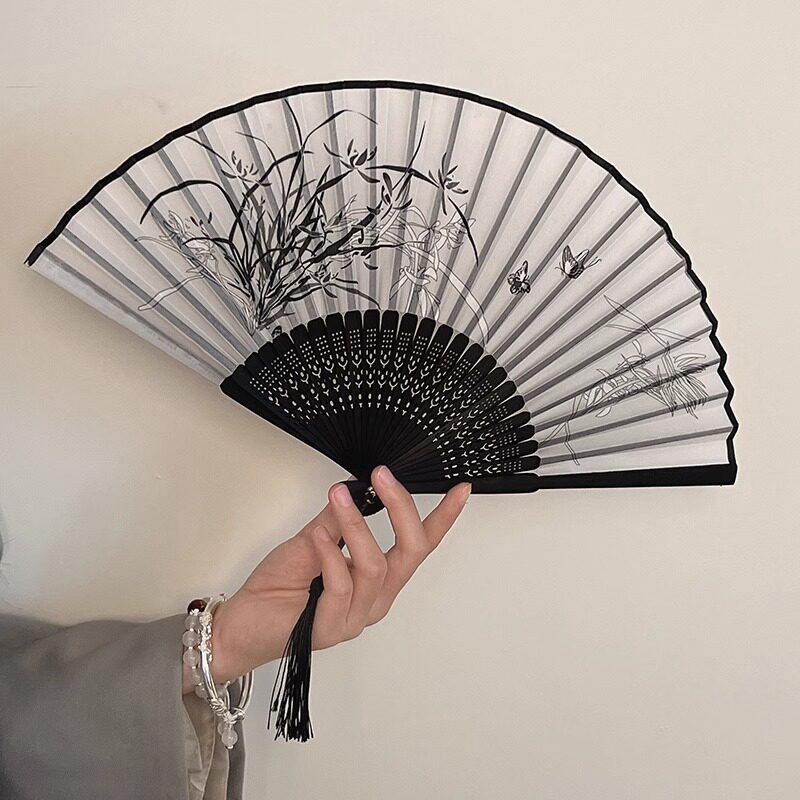 夏天扇子折扇国风新中式古风小扇子黑色简约耐用儿童竹扇随身携带