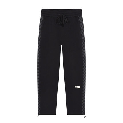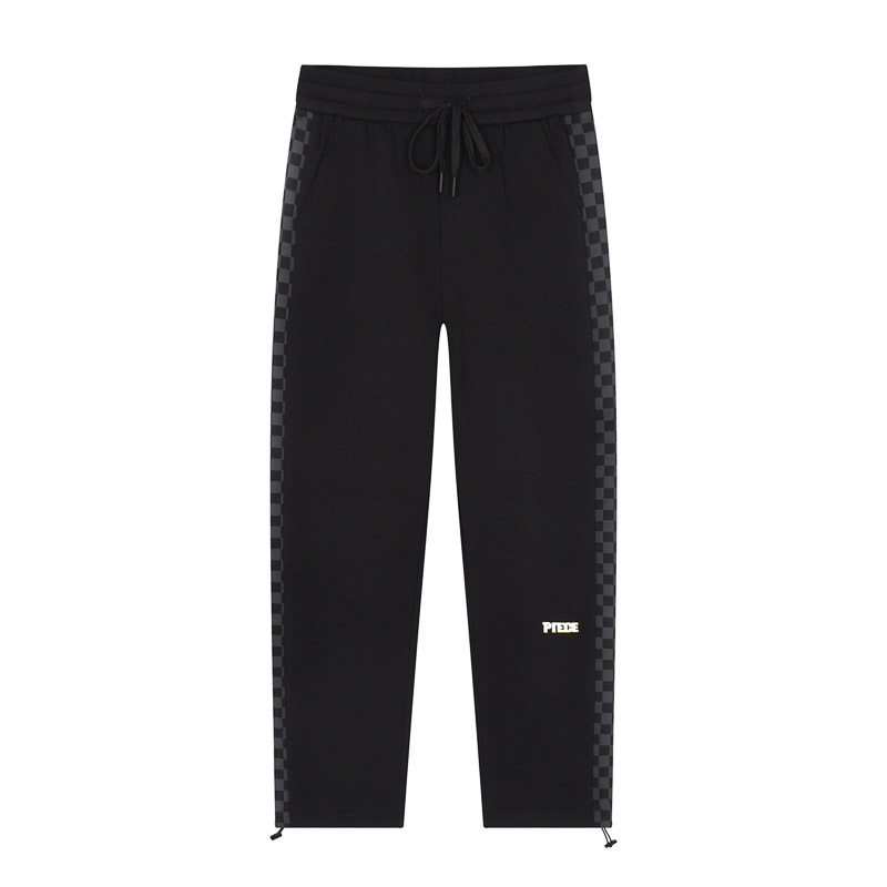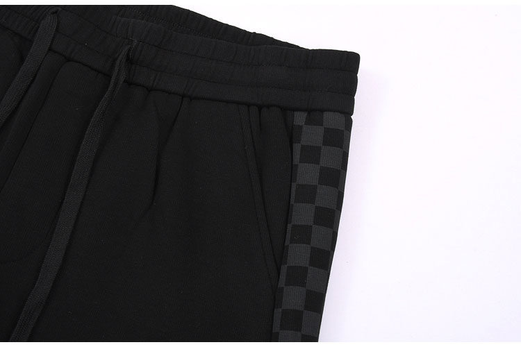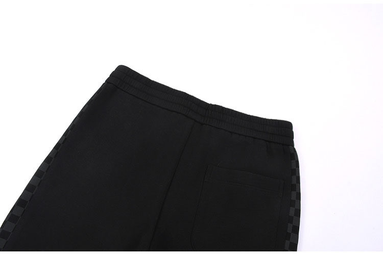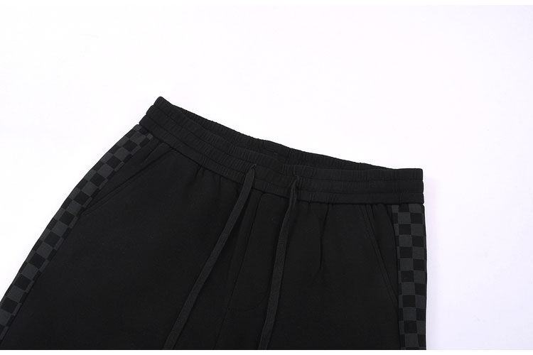 9分男装春秋针织罗马布宽松剪阔腿休闲卫裤两侧棋盘格拼料装饰